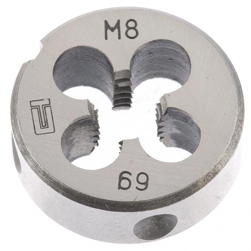 Плашка Сибртех 77020, М8 х 1,25 мм, поможет нарезать внешнюю метрическую резьбу.