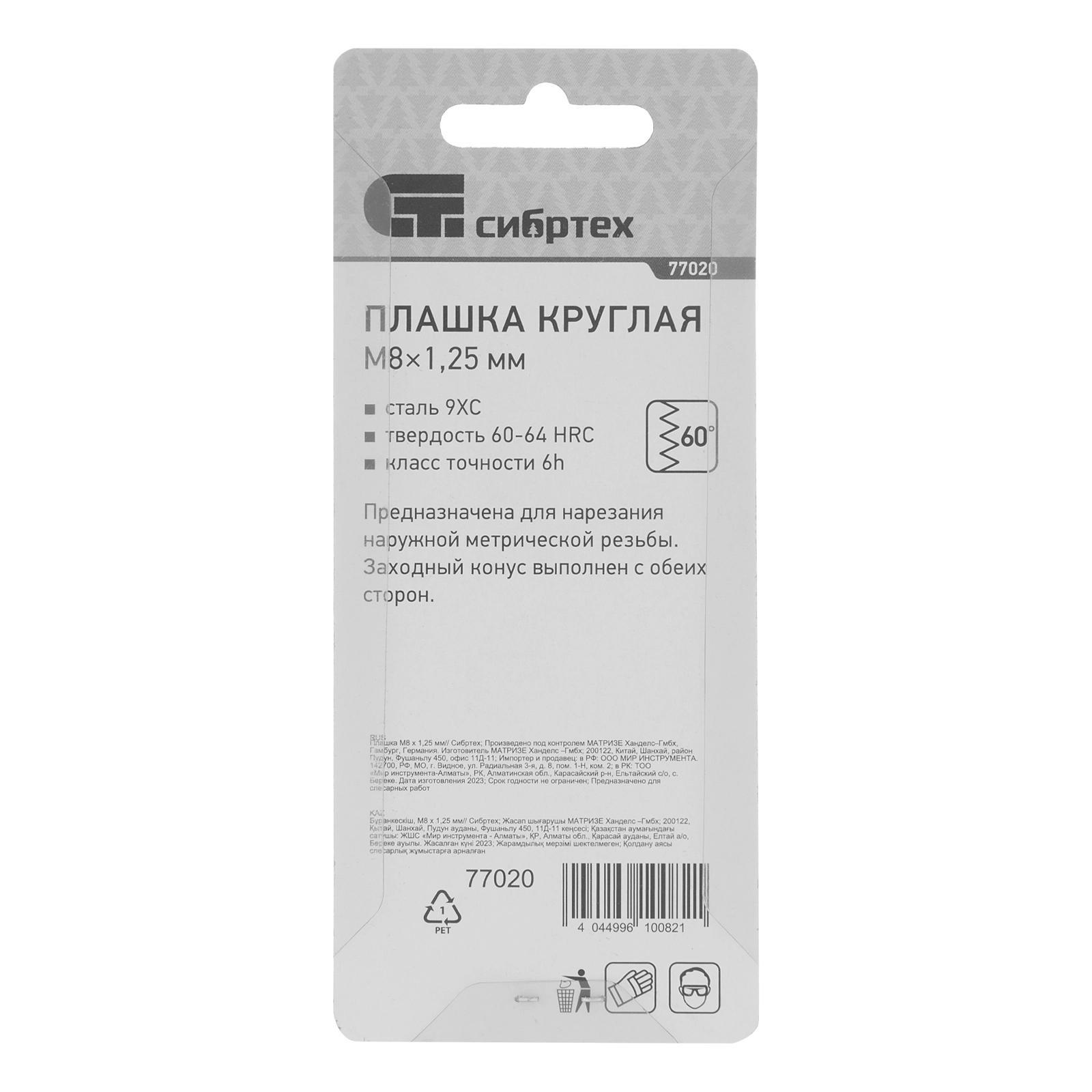 ПроизводителиПлашка метрическая М8 х 1,25 мм (77020) СИБРТЕХ