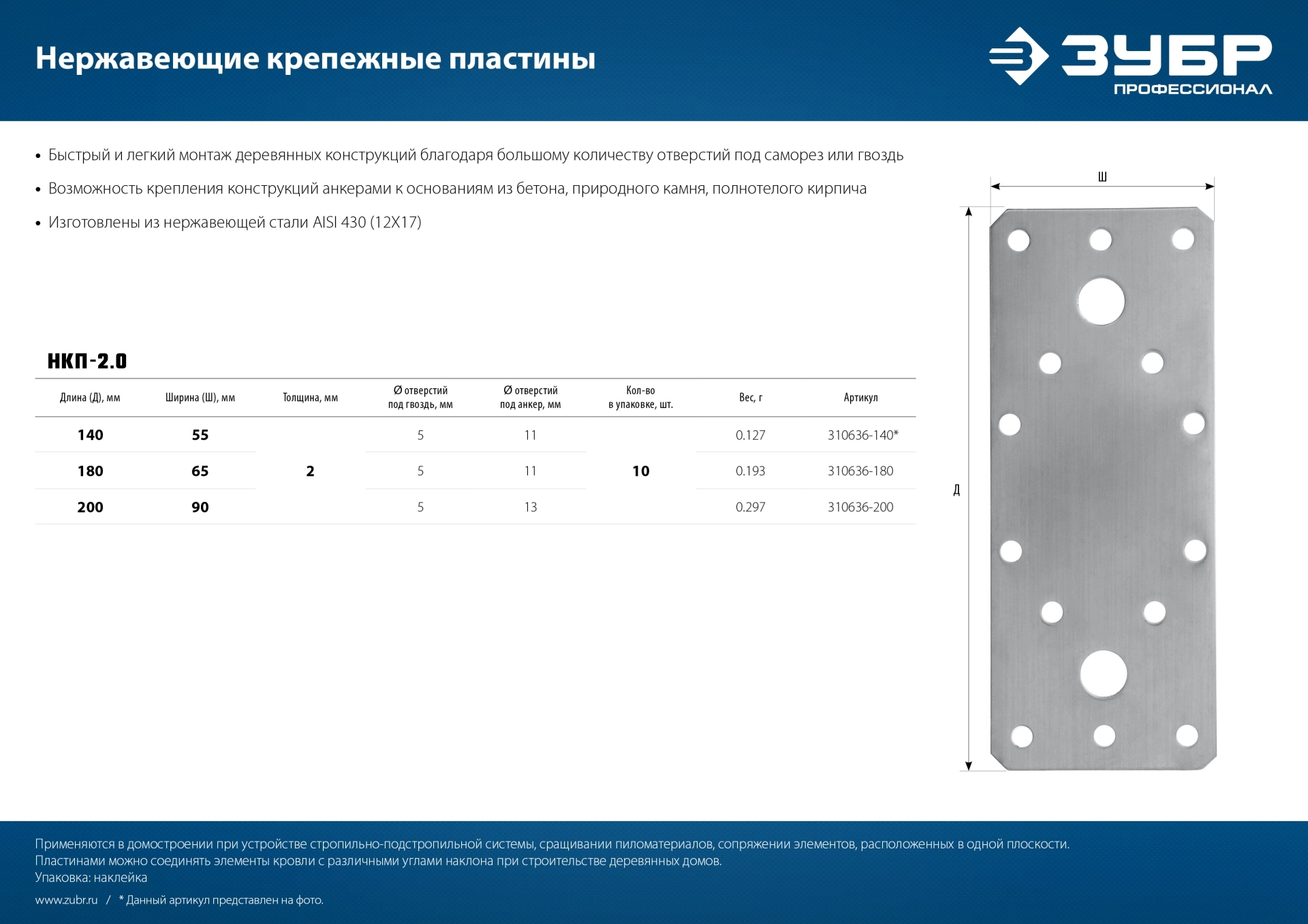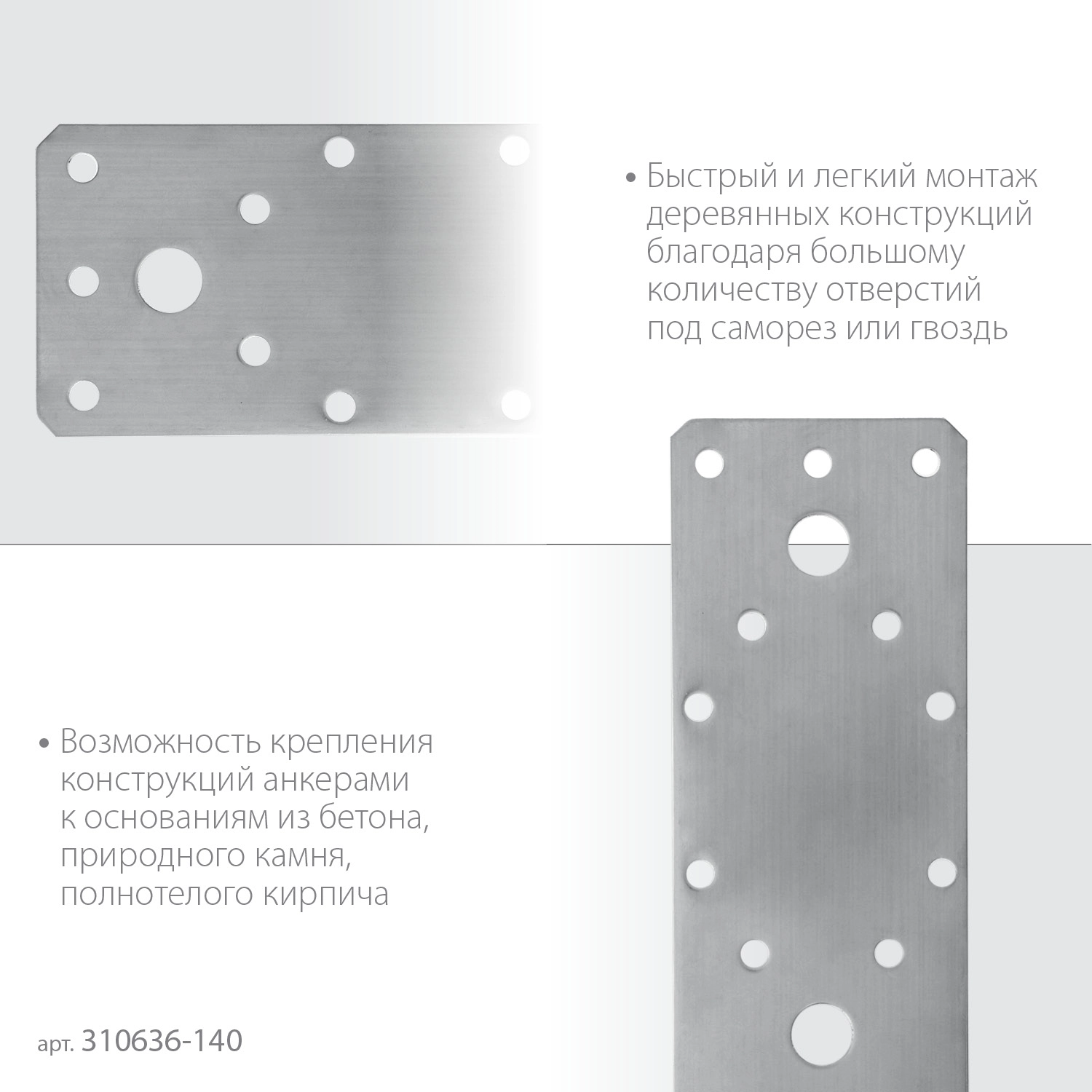 ПроизводителиПластина крепежная нержавеющая НКП-2.0 140х55х2мм, Профессионал (310636-140) ЗУБР