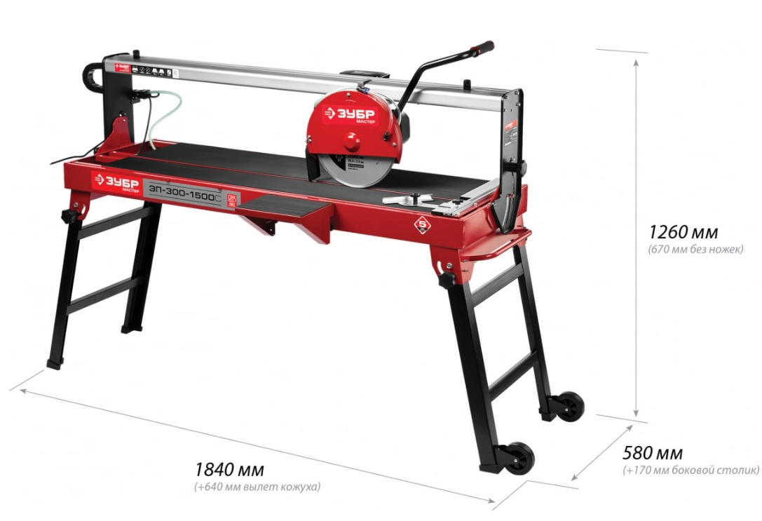 ПроизводителиПлиткорез электр., диск 300х25,4мм, 1500 Вт, длина реза 1200мм (ЭП-300-1500C) ЗУБР