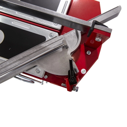 Благодаря механизму каретки, оснащенной подшипниками, плиткорез имеет плавный ход, что позволяет выполнять более точную безошибочную резку. С помощью дополнительных опорных ножек удобно работать с плиткой большого формата. Откидной боковой упор-линейка с двумя шкалами с миллиметровой разметкой. Первая шкала для любых измерений, вторая шкала для измерений под углом 45º (с величиной катетов, соответствующей гипотенузе на первой шкале). Мгновенное закрепление линейки с помощью рычага фиксатора. Резиновые ножки против скольжения и царапин поверхности.