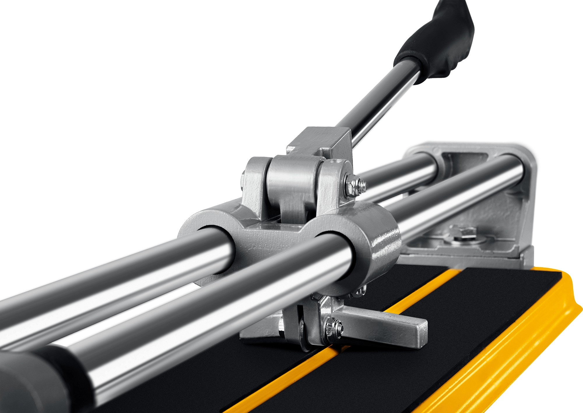 Усиленная платформа и опоры позволяют проводить работы с керамической плиткой повышенной толщины и увеличивают срок службы плиткореза. Оснащенный подшипниками режущий механизм значительно облегчает работу плтикорезом. Благодаря равномерному надрезу обеспечивается разлом кафельной плитки без трещин и сколов.