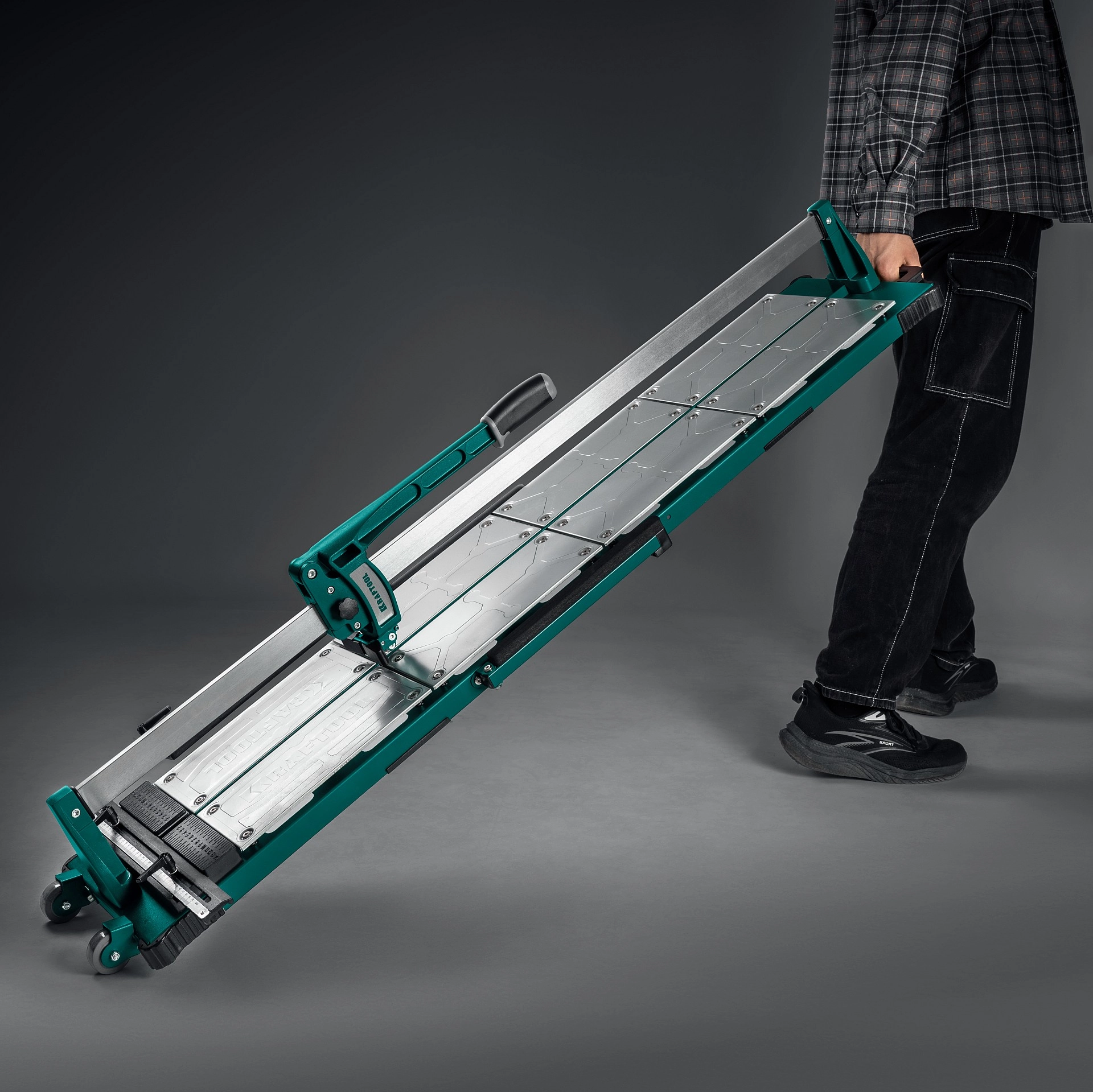 Профессиональный плиткорез SuperLine подходит для резки любой плитки толщиной до 16 мм. Его режущий элемент рассчитан на 5 километров реза без замены. Плавный ход каретке обеспечивают 10 подшипников, спрятанных в корпусе. Цельный стальной рельс прямоугольного сечения позволяет каретке надежно перемещаться, не застревая даже при самых сильных нагрузках. Боковые опоры надежно закрепляются на основании и поддерживают плитку, не позволяя ей соскользнуть. Линейка с угломером позволяет сделать самый точный рез. Плавающее основание является ультимативным решением для защиты плитки от ухода от линии реза во время прохождения режущего элемента по плитке и растрескивания во время разделения. Для удобной транспортировки плиткореза предусмотрены колесики и ручка в противоположных частях основания, а фиксатор на каретке позволяет безопасно транспортировать плиткорез.