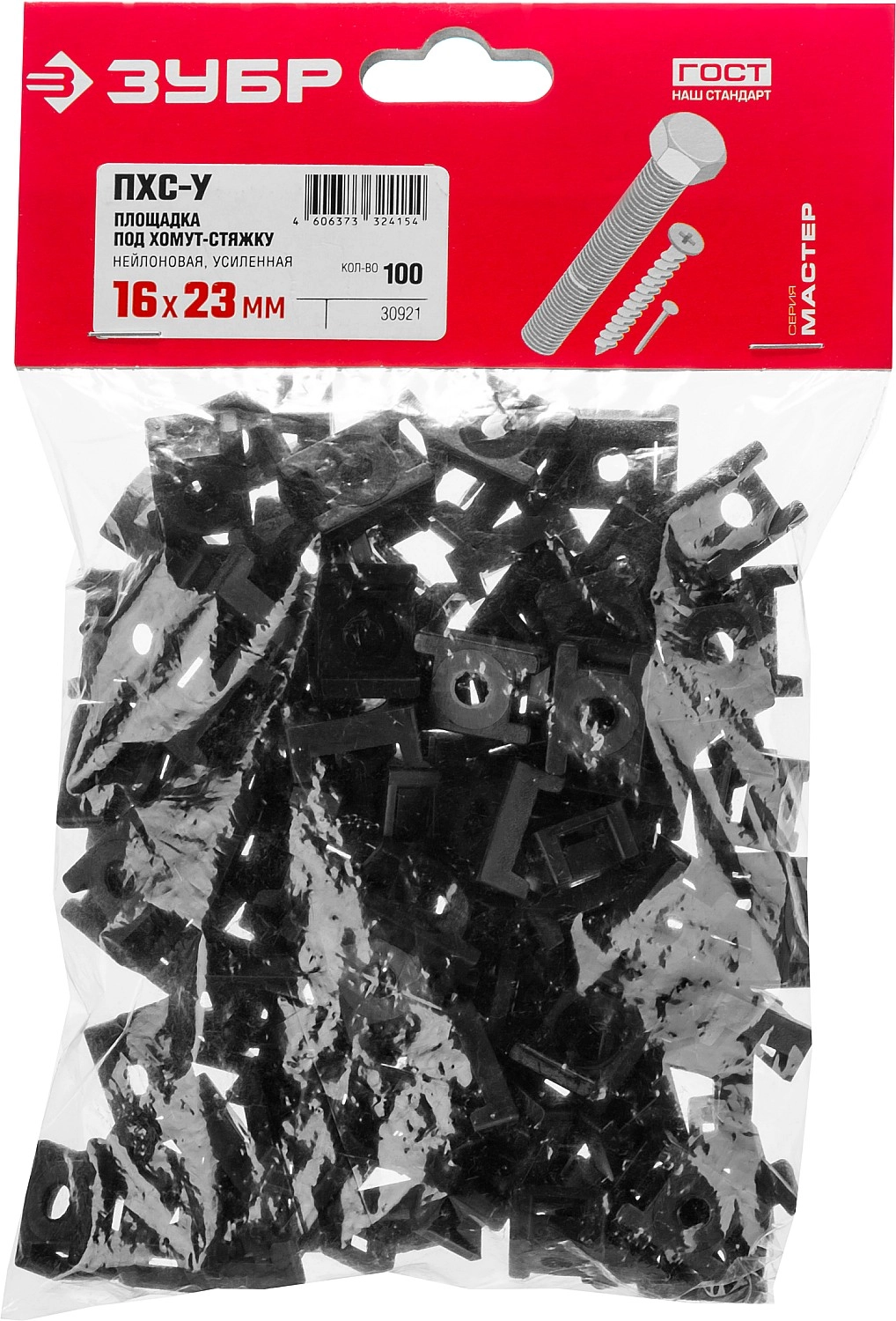 ПроизводителиПлощадка под хомут-стяжку усиленная ПХС-У черная, 16x23 мм, 100шт. нейлоновая (30921) ЗУБР