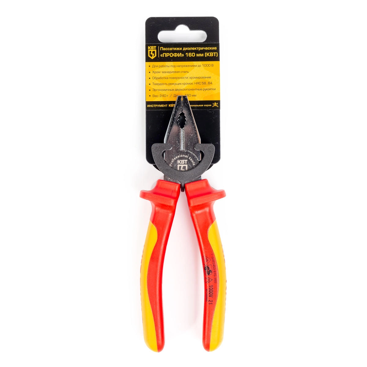 Пассатижи диэлектрические, 160 мм, серия «Профи», КВТ 67357 — предназначены для захвата и удержания плоских и круглых деталей