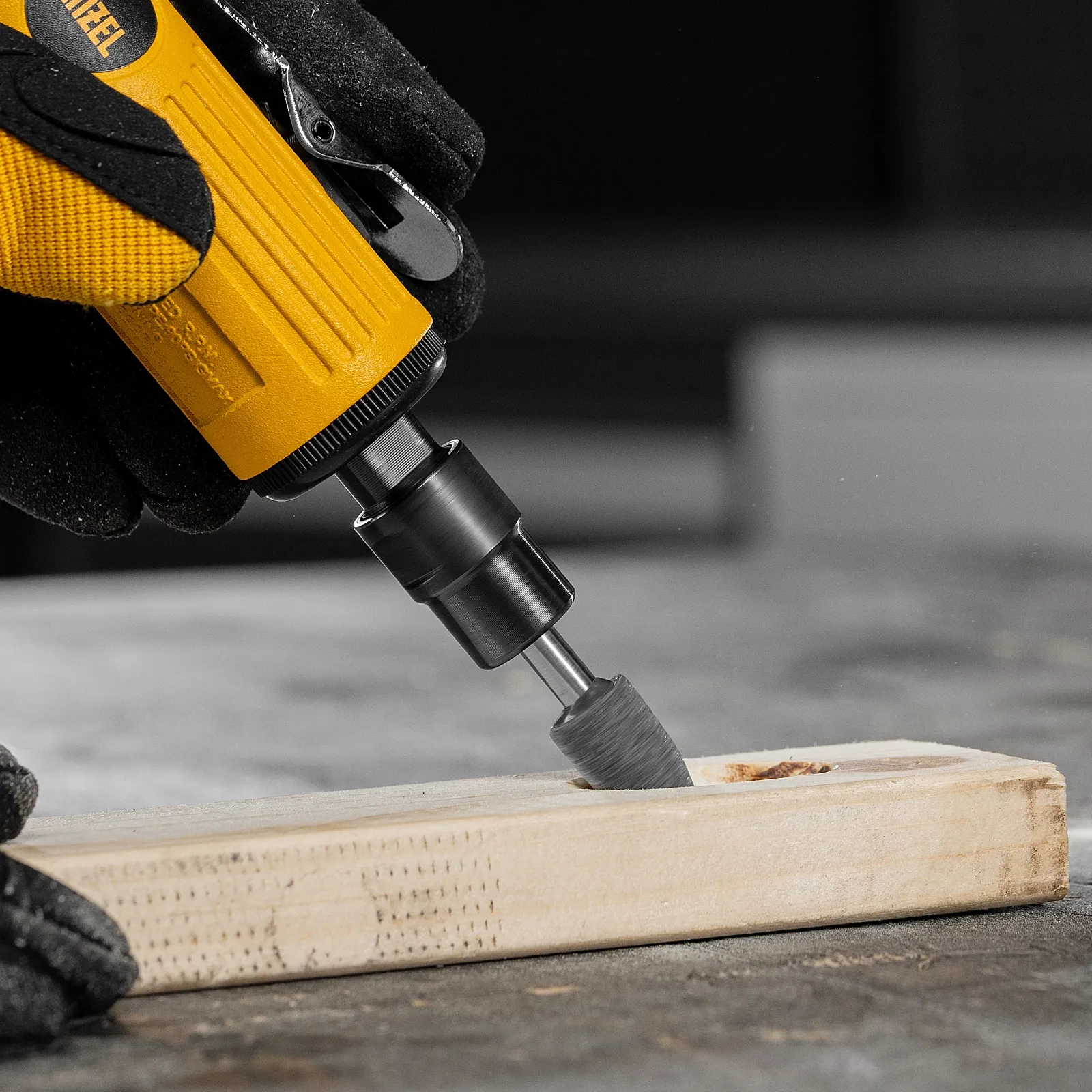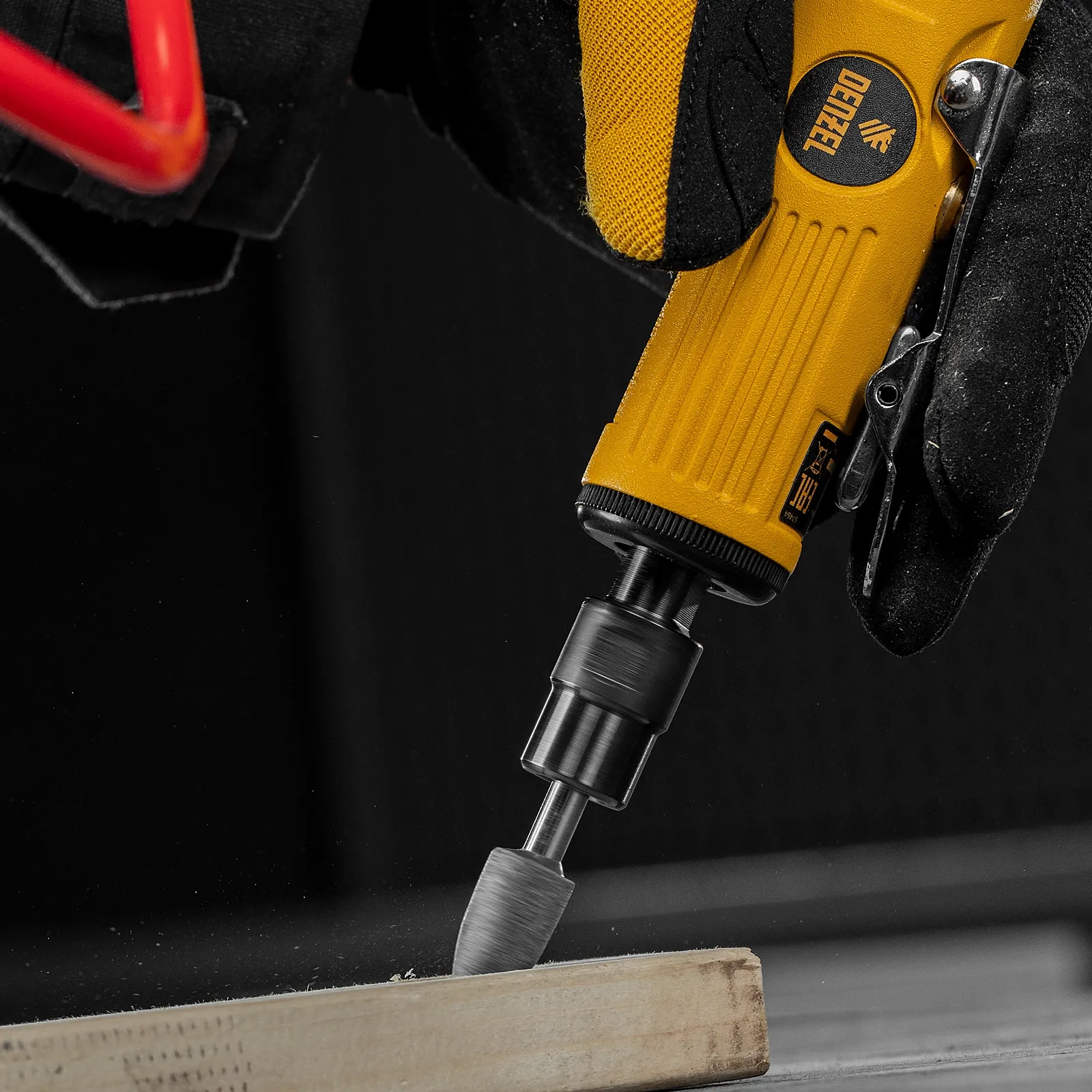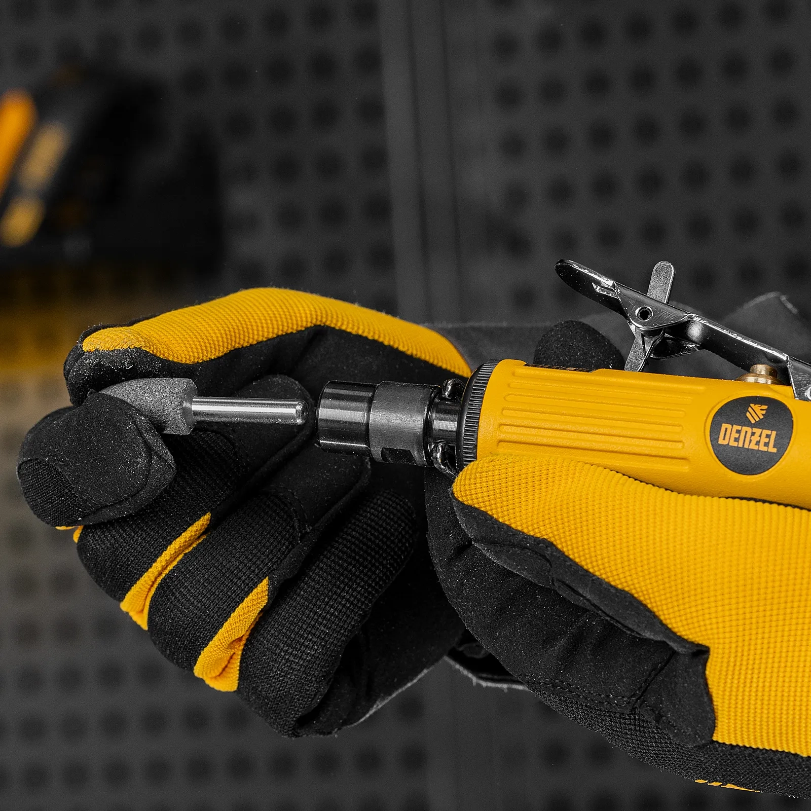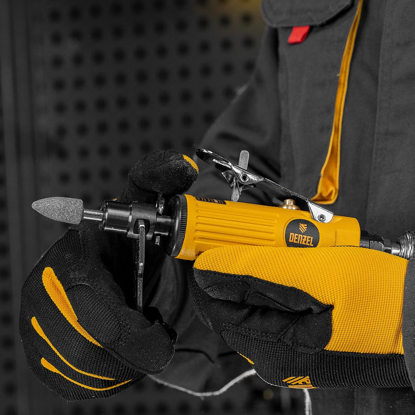 ПроизводителиПневмошлифмашина прямая PGS25000, 25000 об/мин, 10 шлиф. камней, цанга - 3, 6 мм, 113 л/мин Denzel