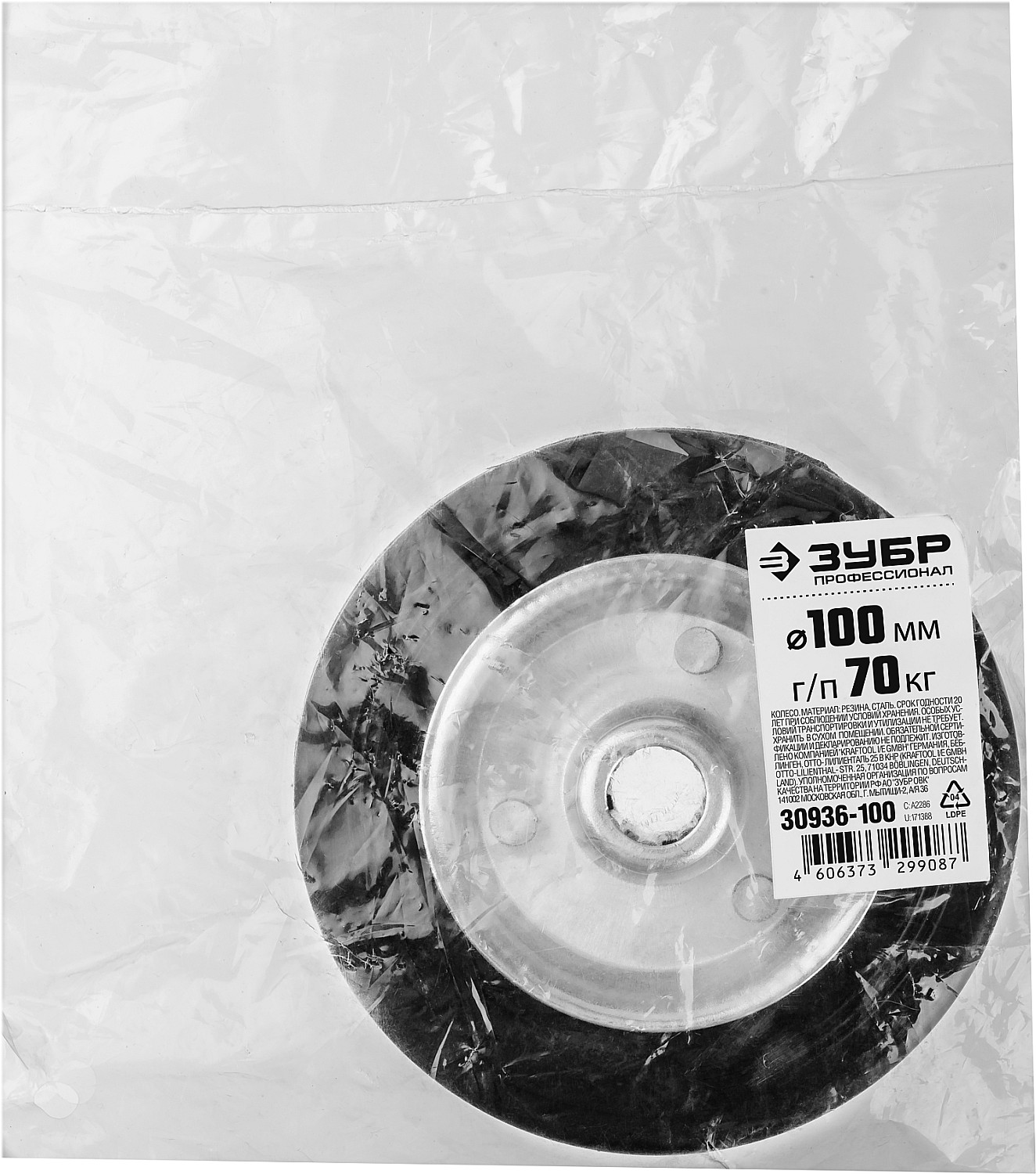 ПроизводителиПодшипник иголчатый резина/металл, колесо, d 100мм, г/п 70кг, Профессионал (30936-100) ЗУБР