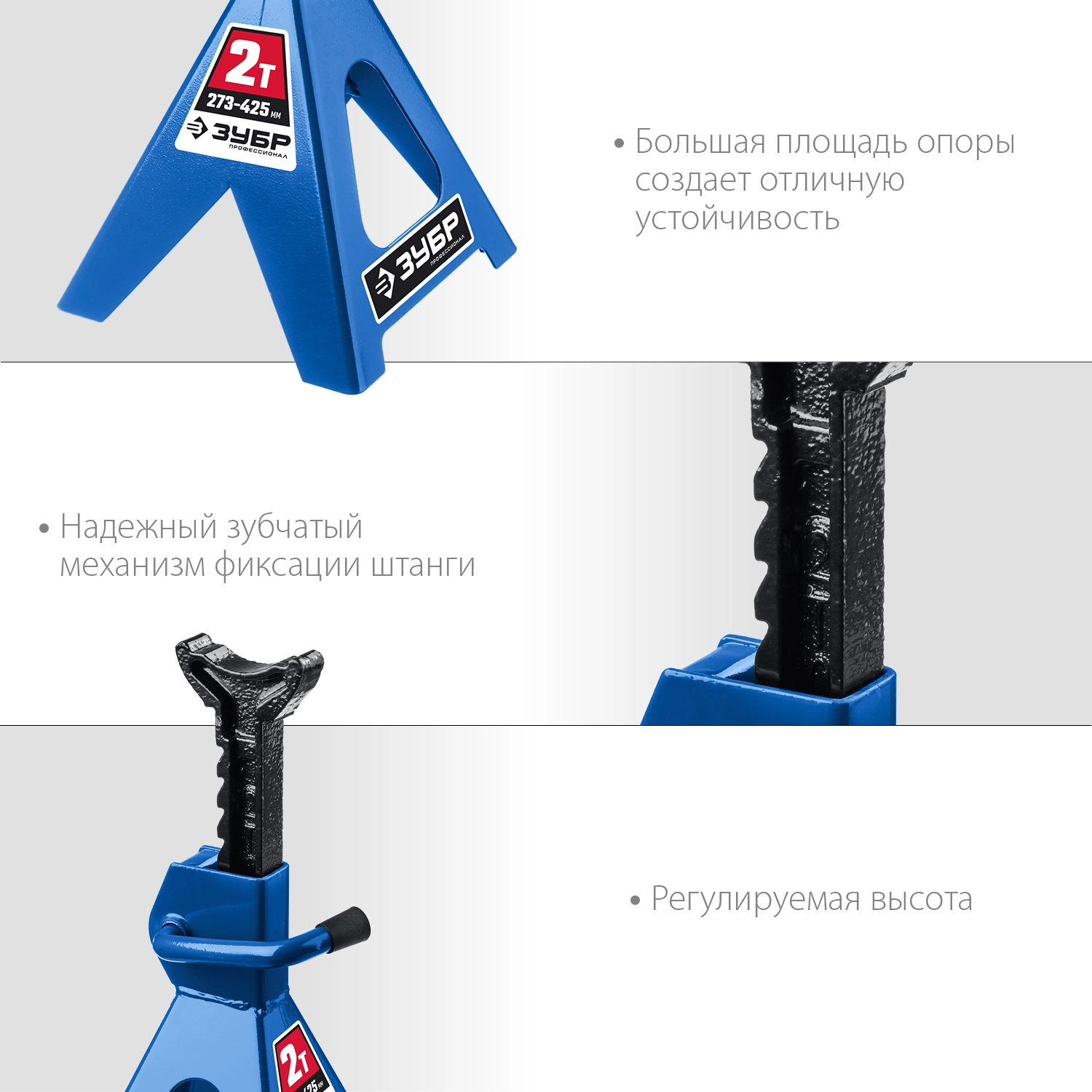 ПроизводителиПодставка страховочная усиленная, 2т, 273-425мм (43065-2_z01) ЗУБР