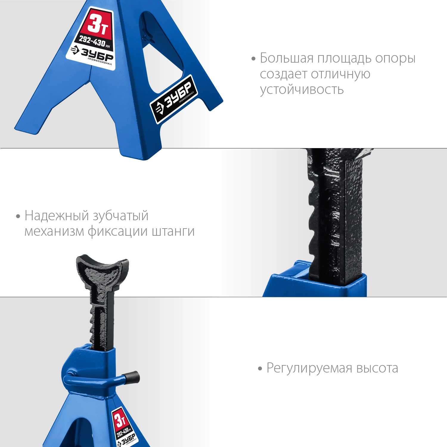 ПроизводителиПодставка страховочная усиленная, 3т, 292-430мм (43065-3_z01) ЗУБР