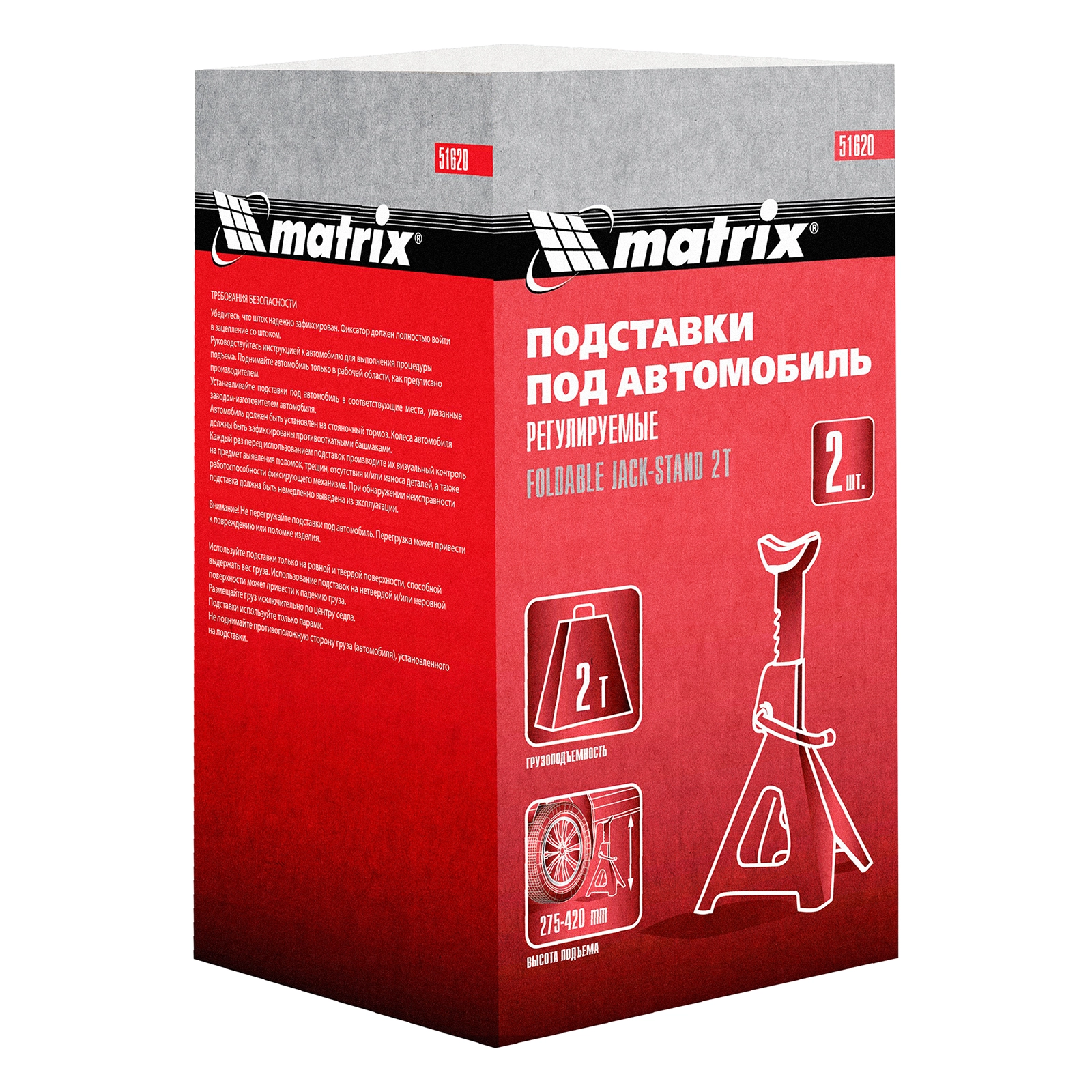 ПроизводителиПодставки под автомобиль, регулируемые, 2 т., 275-420 мм, 2 шт. (51620) MATRIX