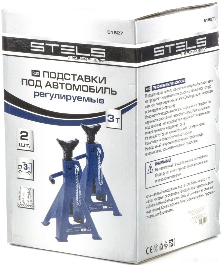 ПроизводителиПодставки под автомобиль, регулируемые, 3 т., 280-430 мм, 2 шт. (51627) STELS