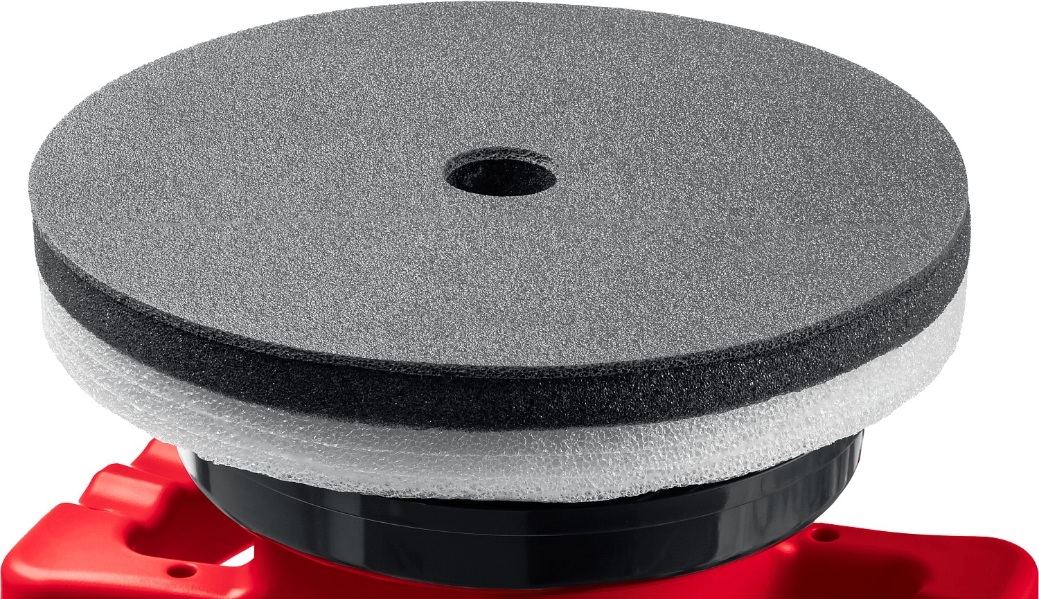 - Специальное водоотталкивающее покрытие полировальной тарелки не позволяет полироли впитываться, что повышает качество полировки и уменьшает расход средства