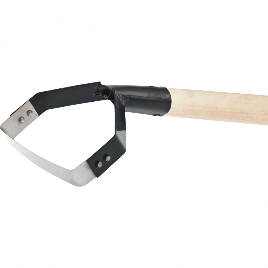 Остро заточенная рабочая часть имеет петлеобразную форму, благодаря чему инструмент легко срезает сорняки и выполняет поверхностное рыхление.