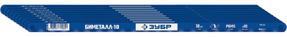 ПроизводителиПолотно по металлу, биметаллическое 18TPI, шаг 1,4 мм, 300мм, 10шт (15855-18-10_z01) ЗУБР