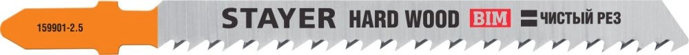 ПроизводителиПолотна STAYER, T101BF, для эл/лобзика, Bi-Metal, по твердому дереву, T-хвост., шаг 2,5мм, 75мм, 2шт