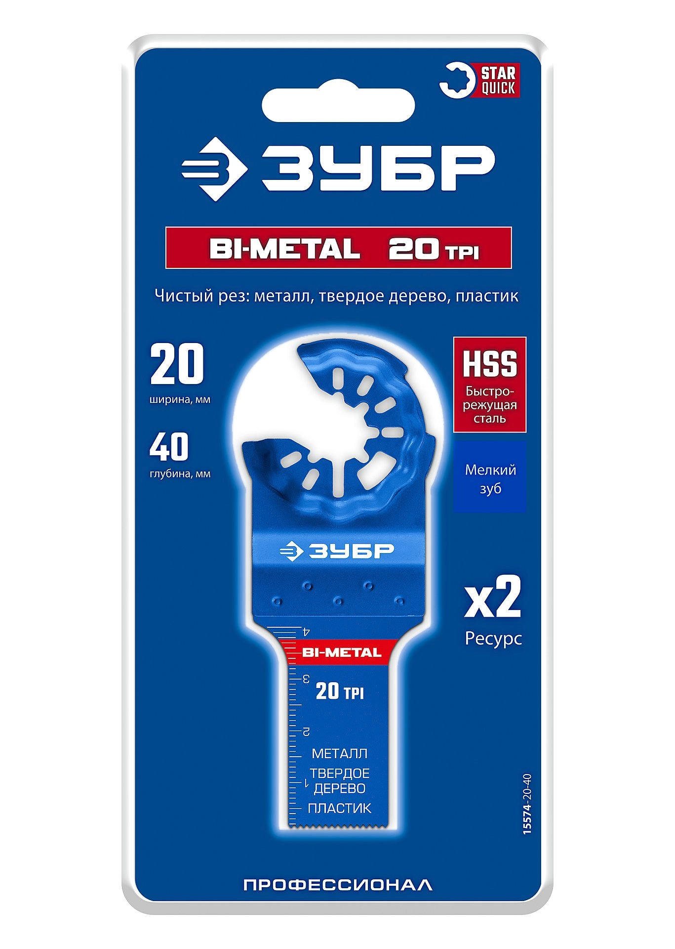 ПроизводителиПолотно биметал, 20x40мм, 20TPI чистый рез: металл, твердое дерево, пластик BIM (15574-20-40) ЗУБР