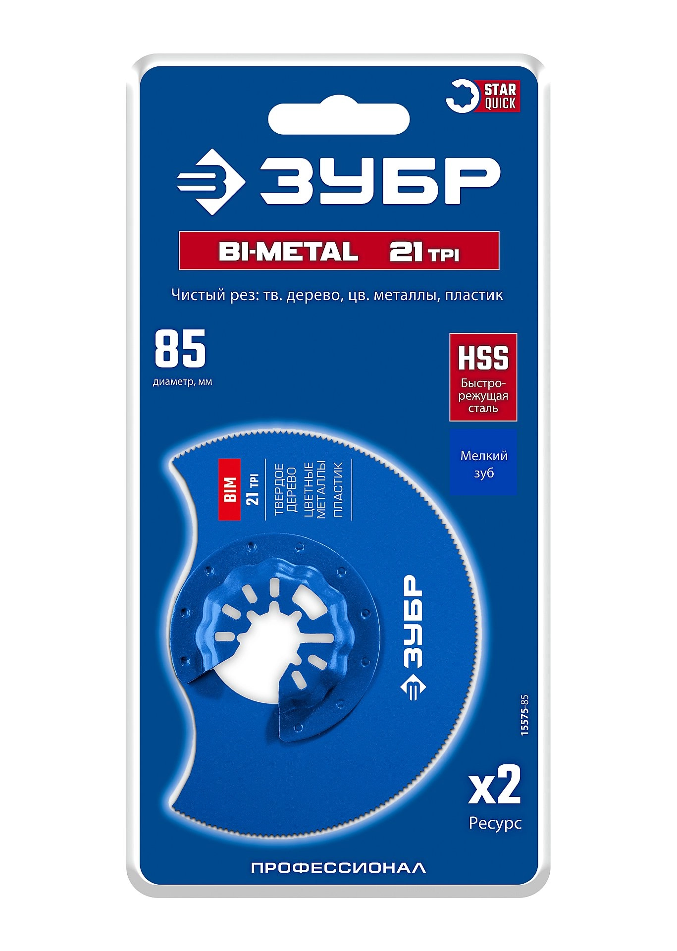 ПроизводителиПолотно биметал диск, d 85мм, 21TPI чистый рез: твердое дерево, цветные метал BIM (15575-85) ЗУБР
