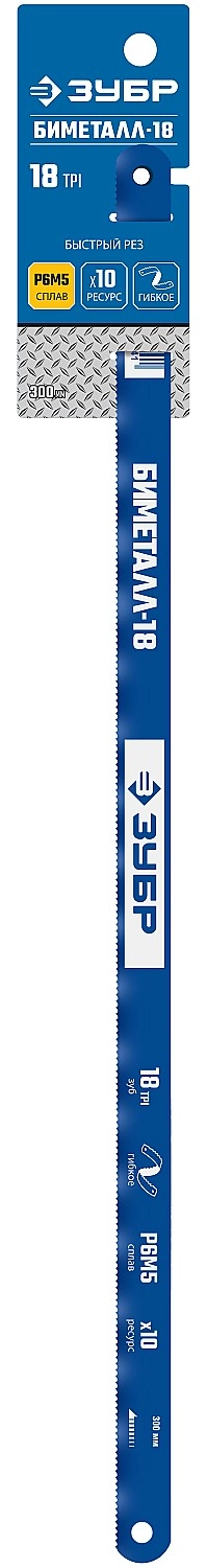ПроизводителиПолотно биметаллическое по металлу, 18 TPI: быстрый рез, 300 мм, HSS (15855-18-1) ЗУБР