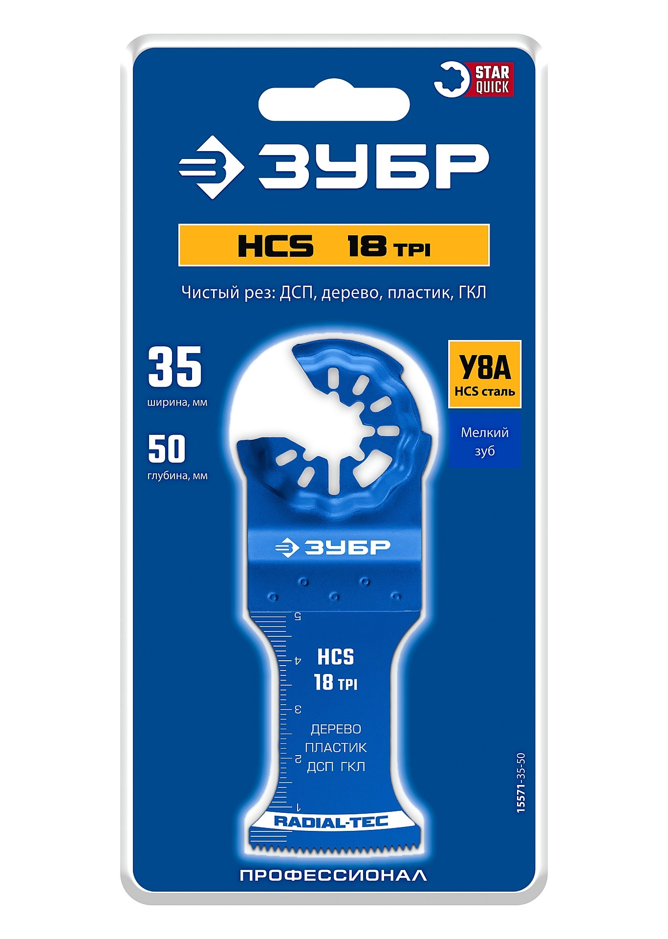 ПроизводителиПолотно пильное HCS 35x50мм, 18TPI, чистый рез: дерево, пластик, ДСП, ГКЛ (15571-35-50) ЗУБР