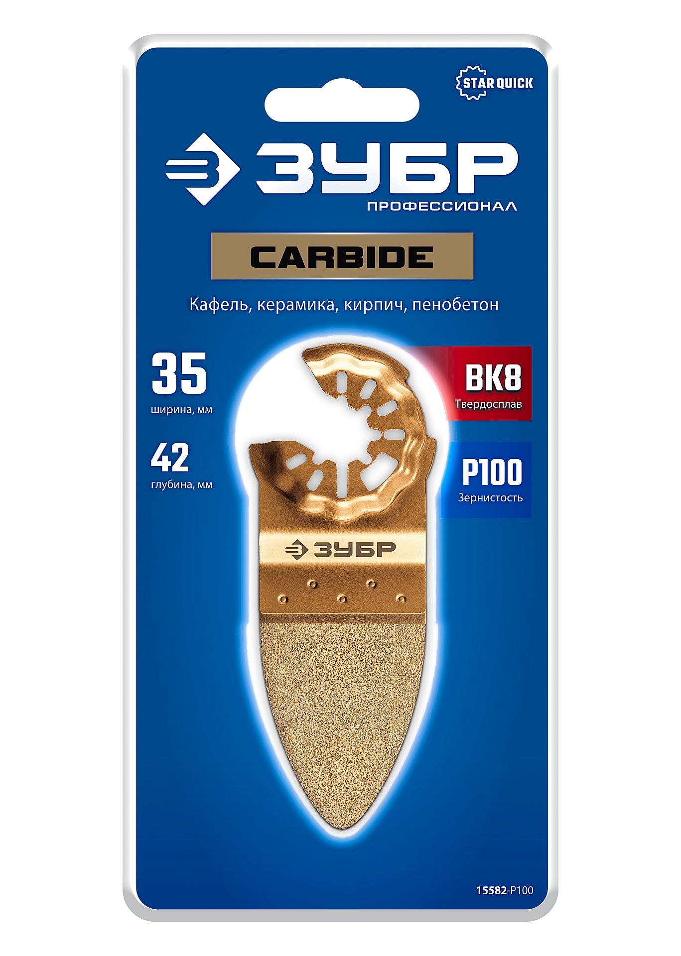 ПроизводителиПолотоно CARBIDE ВК8 Р100 35x42мм дельтовид. с тв. крошк.: керам., кирпич, пенобе (15582-P100) ЗУБР