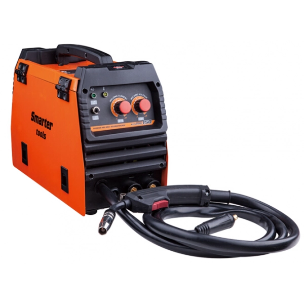 На передней панели располагаются поворотные регуляторы для точной настройки силы тока и скорости подачи проволоки для получения сварочного шва высокого качества.