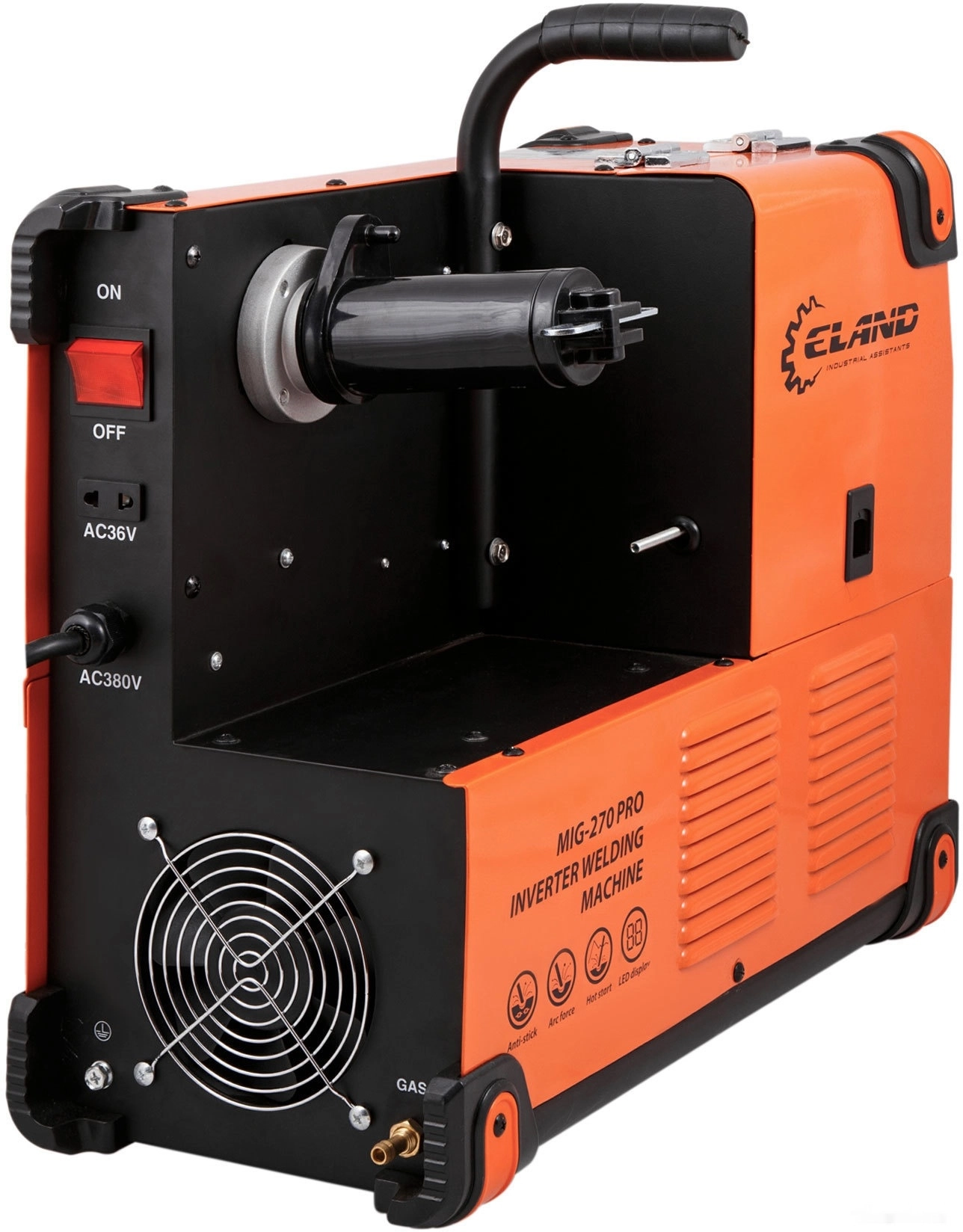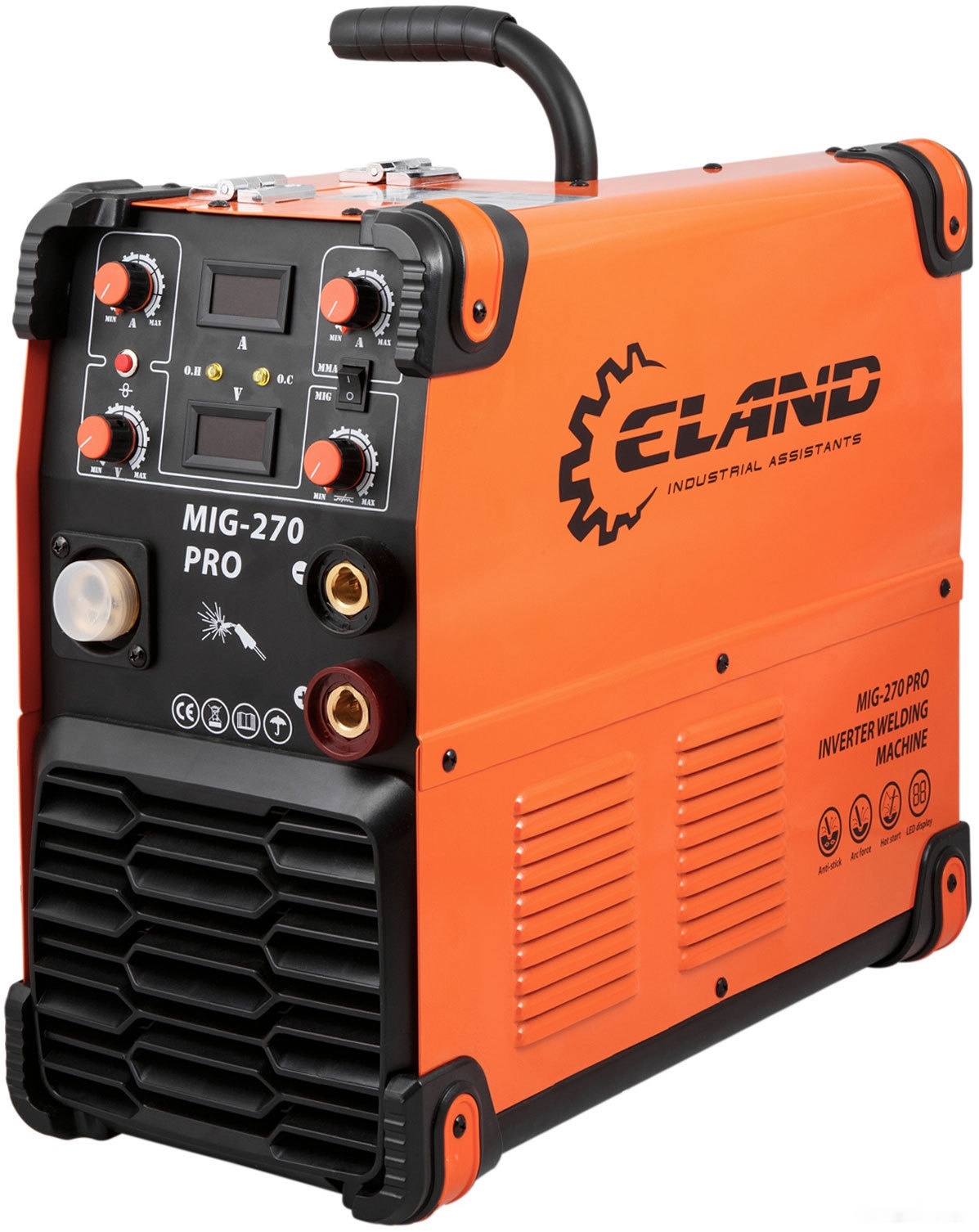 ПроизводителиПолуавтомат сварочный MIG-270 PRO (MIG/MAG/MMA, 9.5кВт, 380В, 40-270А, ПВ60% КПД 85%) ELAND