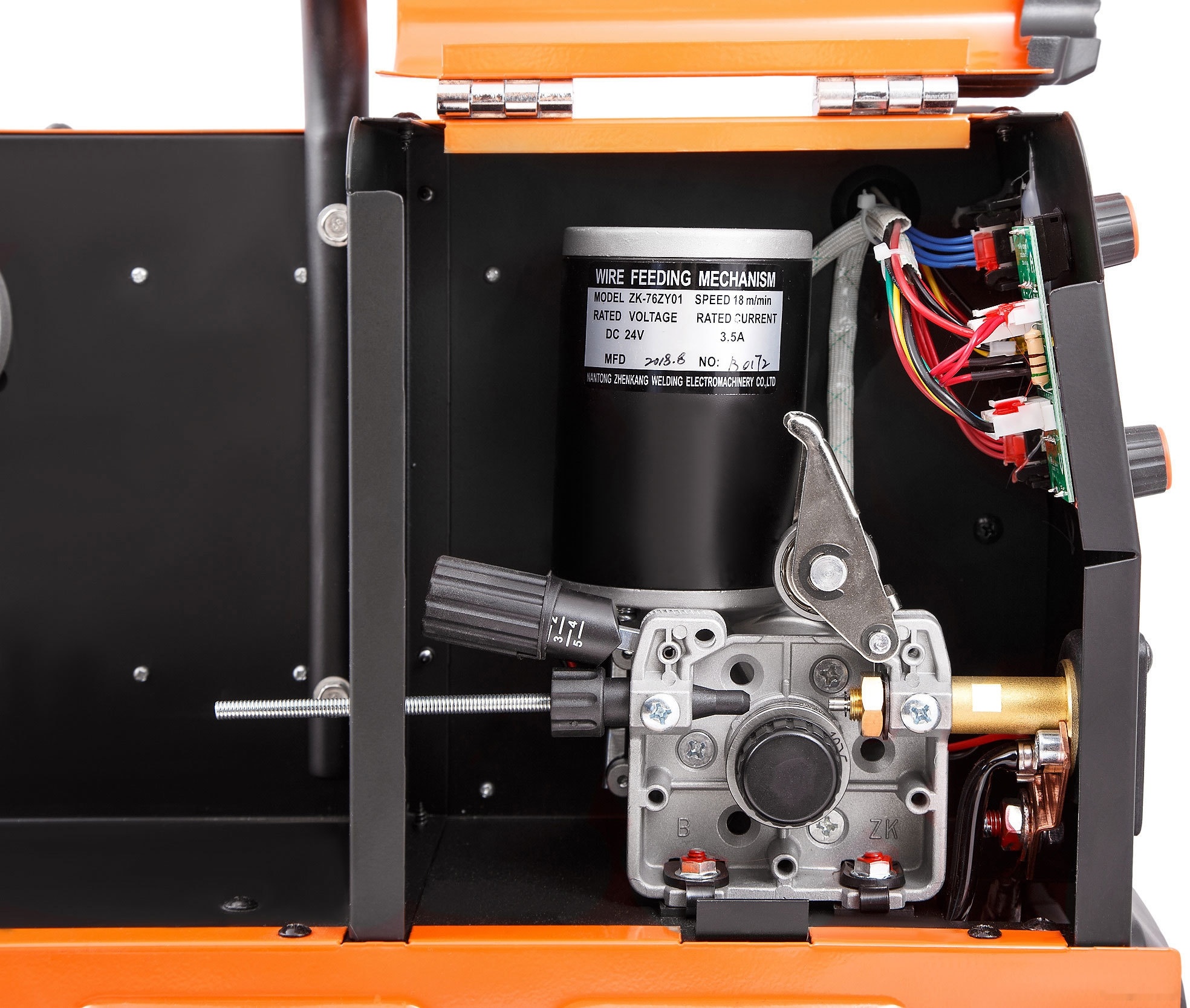 К плюсам можно отнести высокое КПД при длительной сварке проволокой до 1.2 мм благодаря мощной системе охлаждения.