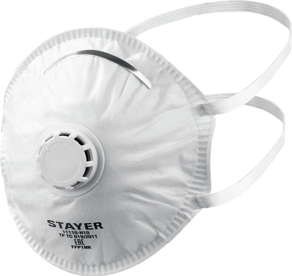 ПроизводителиПолумаска фильтр, с клапан выдоха, коническая, 10 шт,класс защиты FFP1,KV-80 (11110-H10_z01) STAYER