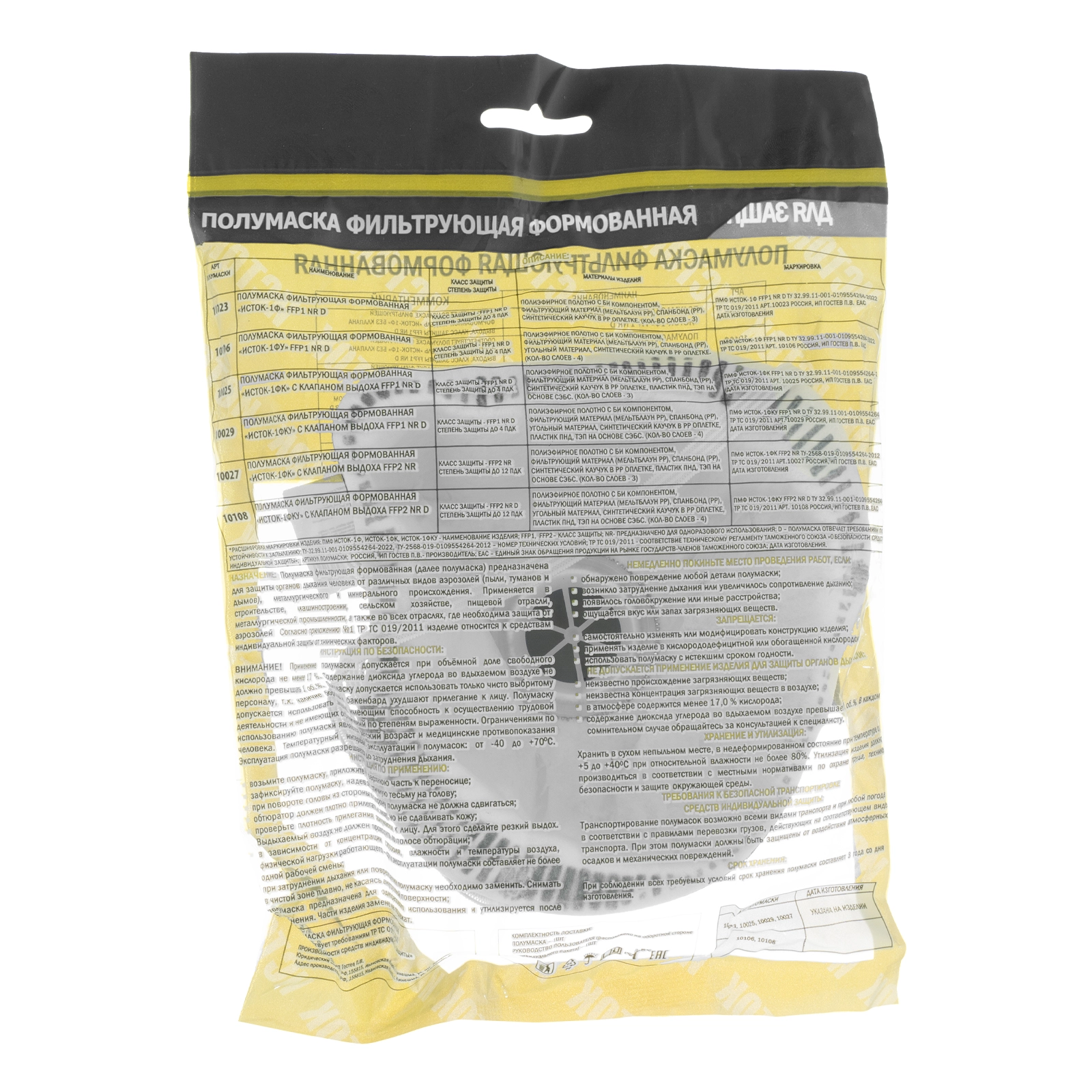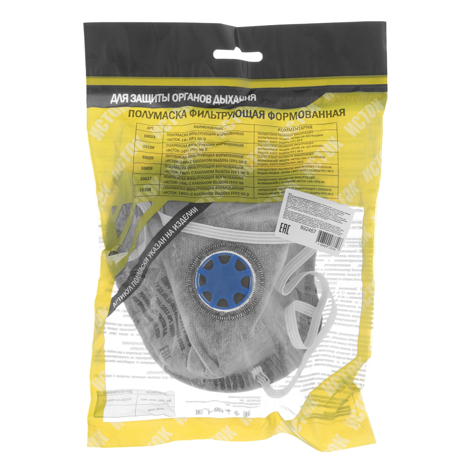 ПроизводителиПолумаска фильтрующая формованная, с клапаном и угольным слоем (FFP1), в инд. упаковке (10029) ИСТОК