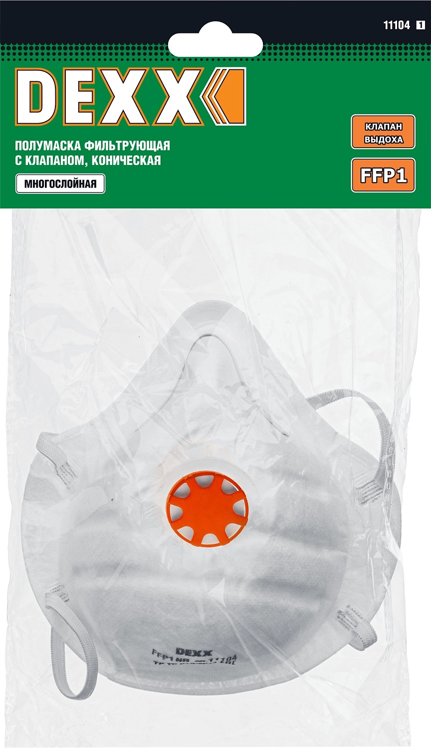 ПроизводителиПолумаска фильтрующая противоаэрозольная c клапаном FFP1 (11104_z01) DEXX