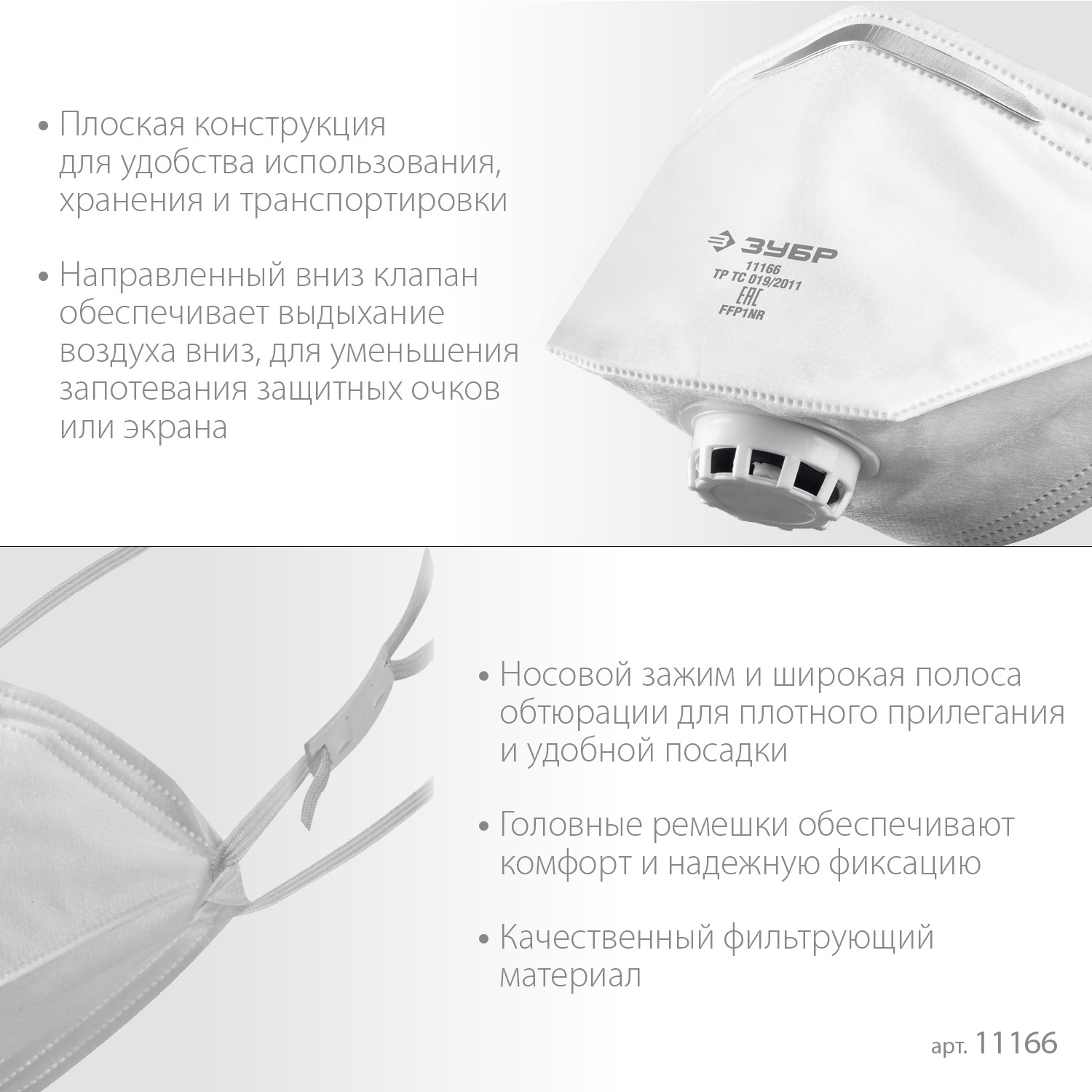 ПроизводителиПолумаска фильтрующая, с клапаном выдоха,плоская,класс защиты FFP1 (11166_z01) ЗУБР