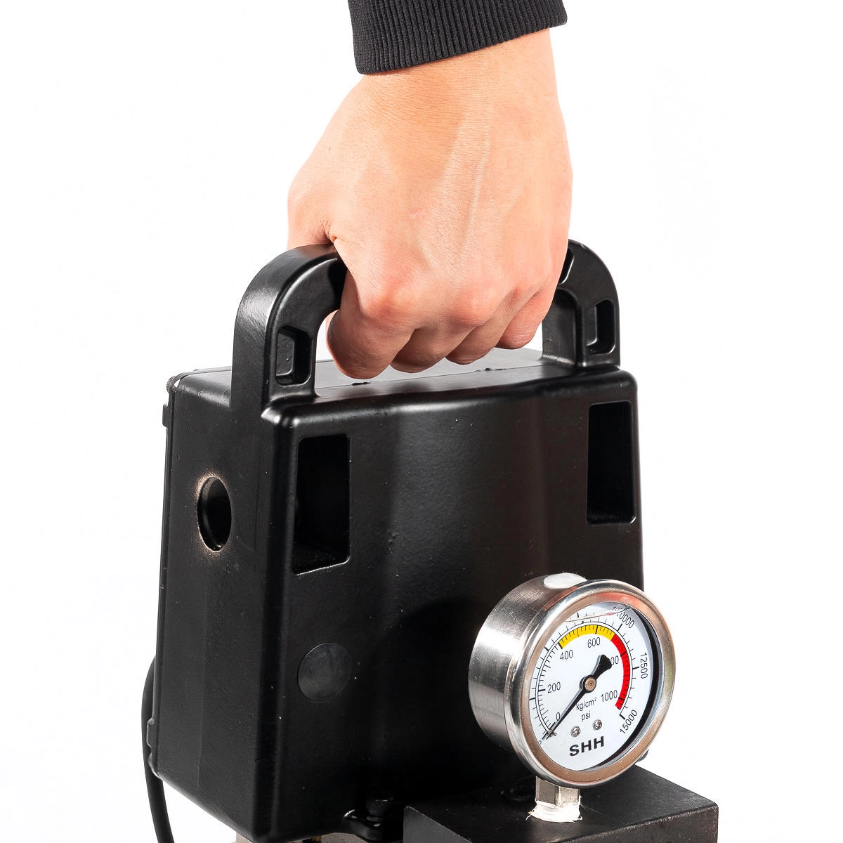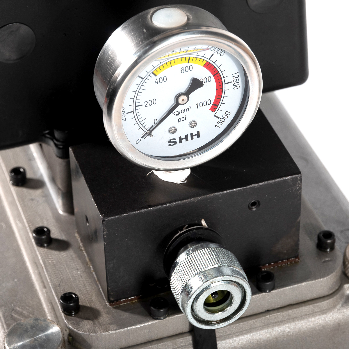 Объем маслобака: 2 л Максимальное давление: 700 бар (70 МПа) Механизм автоматического сброса давления (АСД) Встроенный виброустойчивый манометр В стенку маслобака встроен индикатор уровня маcла в помпе Протекторы мотора выполняют функцию рукояток для переноски Мощность электродвигателя 0.75 кВт Напряжение: 230 В/50 Гц Вес инструмента: 15.55 кг Габариты упаковки: 430х390х255 мм Характеристики