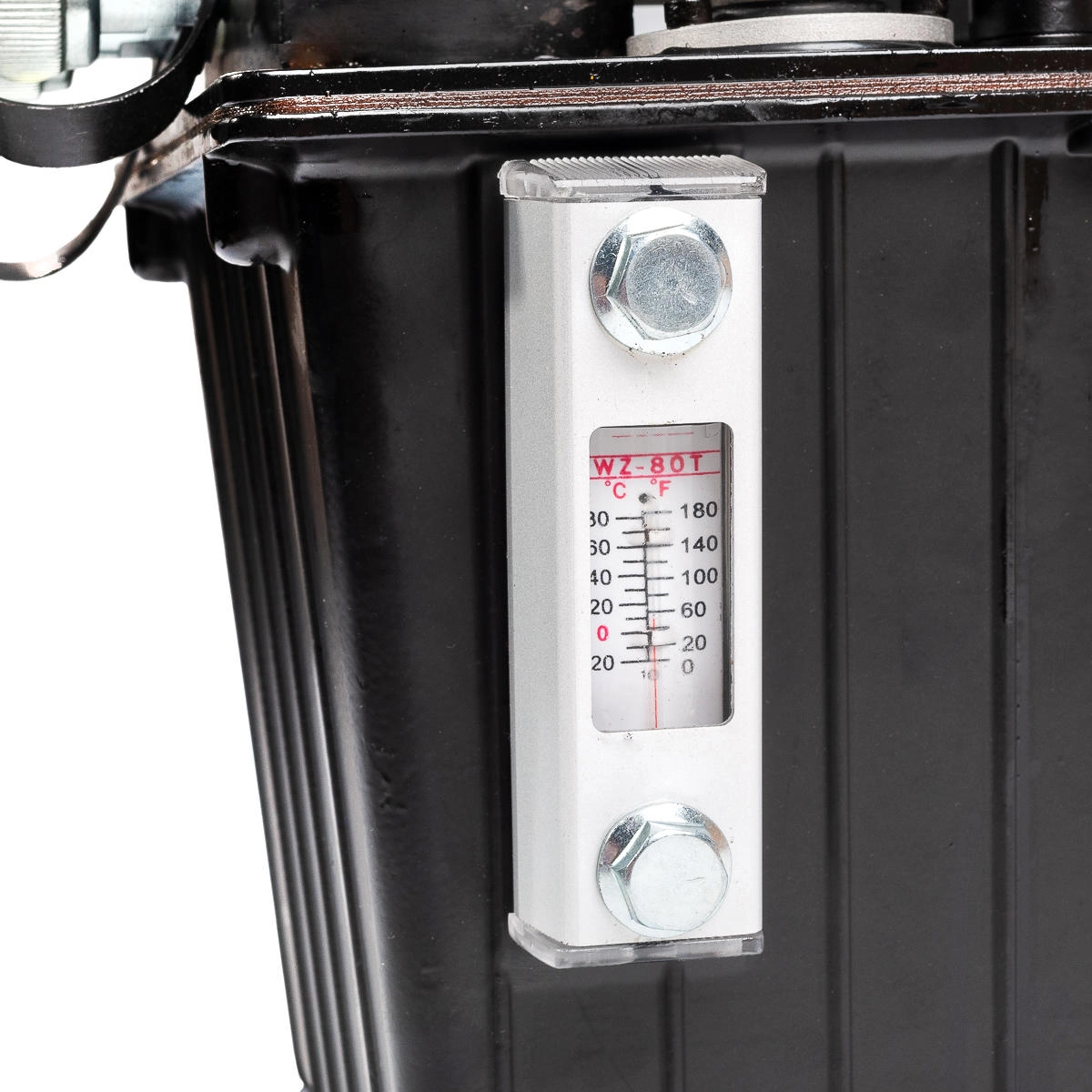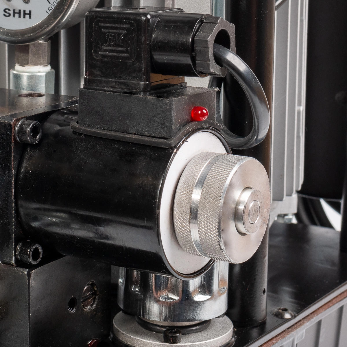 Объем маслобака: 5 л Максимальное давление: 700 бар (70 МПа) Механизм автоматического сброса давления (АСД) В стенку маслобака встроен термометр и индикатор уровня маcла в помпе Мощность электродвигателя 0.75 кВт Напряжение: 230 В/50 Гц Вес инструмента с полным маслобаком: 31.60 кг Габариты упаковки: 465х350х520 мм Характеристики