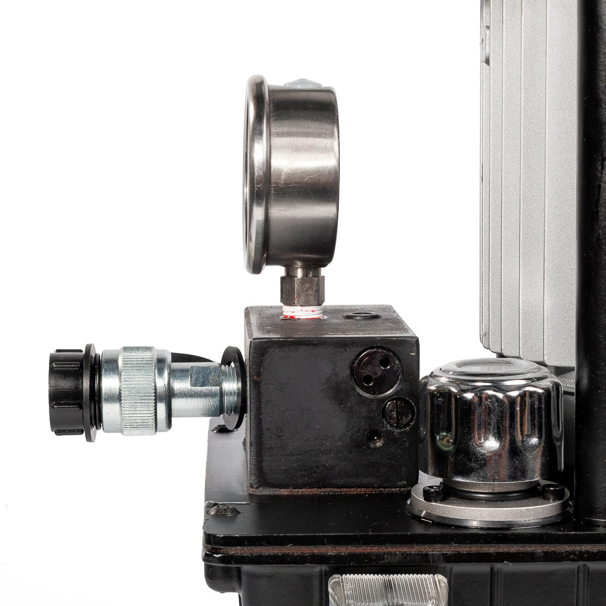 Объем маслобака: 5 л Максимальное давление: 700 бар (70 МПа) Механизм автоматического сброса давления (АСД) Встроенный виброустойчивый манометр В стенку маслобака встроен термометр и индикатор уровня маcла в помпе Протекторы мотора выполняют функцию рукояток для переноски Мощность электродвигателя 0.75 кВт Напряжение: 230 В/50 Гц Усовершенствованная конструкция концевых муфт, предохраняющих РВД от излома Вес инструмента с полным маслобаком: 27.90 кг Габариты упаковки: 450х270х520 мм Характеристики