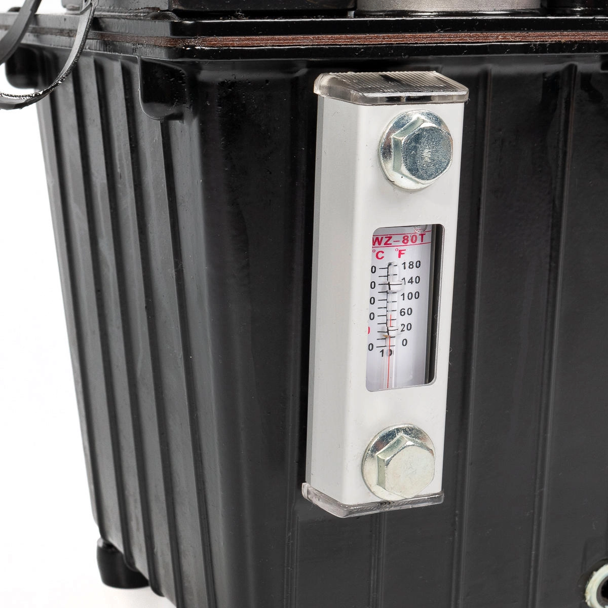 Объем маслобака: 5 л Максимальное давление: 700 бар (70 МПа) Механизм автоматического сброса давления (АСД) В стенку маслобака встроен термометр и индикатор уровня маcла в помпе Мощность электродвигателя 0.75 кВт Напряжение: 230 В/50 Гц Вес инструмента с полным маслобаком: 31.60 кг Габариты упаковки: 465х350х520 мм Характеристики
