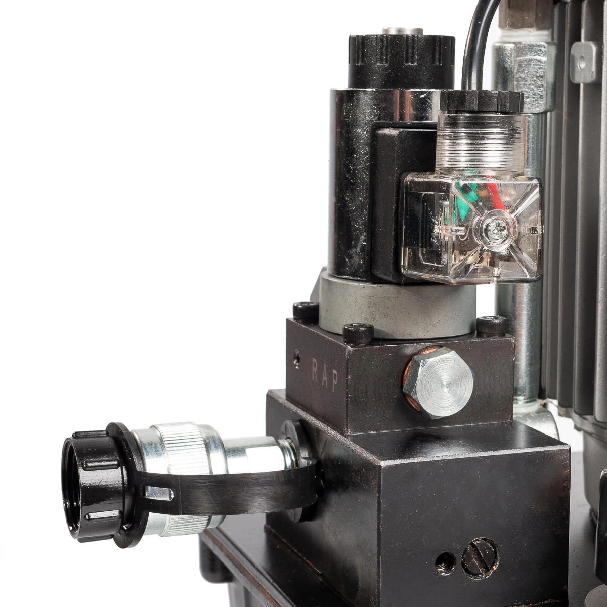 Характеристики КВТ ПМЭ-7050У: Электромагнитный трехпозиционный гидрораспределитель работает в режиме «рабочиий ход – удержание – возврат» с возможностью удержания рабочего механизма под нагрузкой (домкраты, трубогибы и т.д.) Производительность насоса: 1 ступень 2.8 л/мин 2 ступень 0.5 л/мин