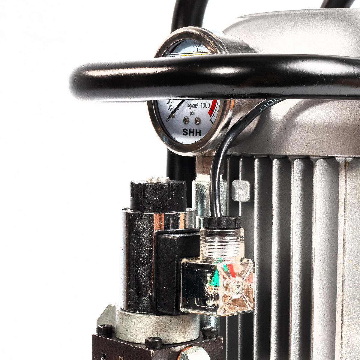 Объем маслобака: 5 л Максимальное давление: 700 бар (70 МПа) Механизм автоматического сброса давления (АСД) В стенку маслобака встроен термометр и индикатор уровня маcла в помпе Мощность электродвигателя 0.75 кВт Напряжение: 230 В/50 Гц Вес инструмента: 30.10 кг Габариты упаковки: 465х350х520 мм Характеристики