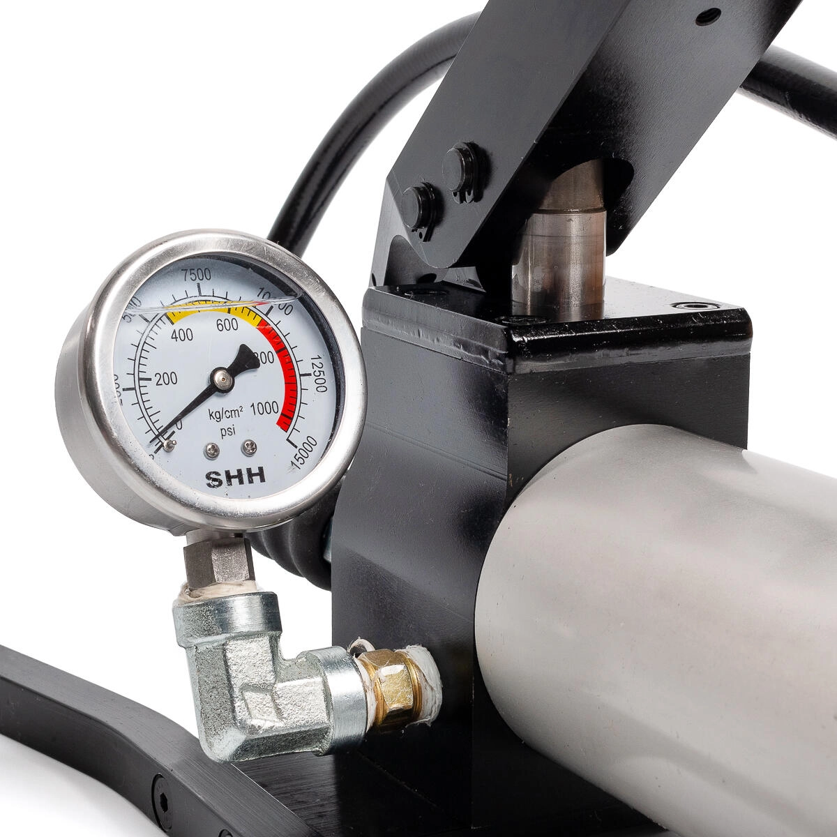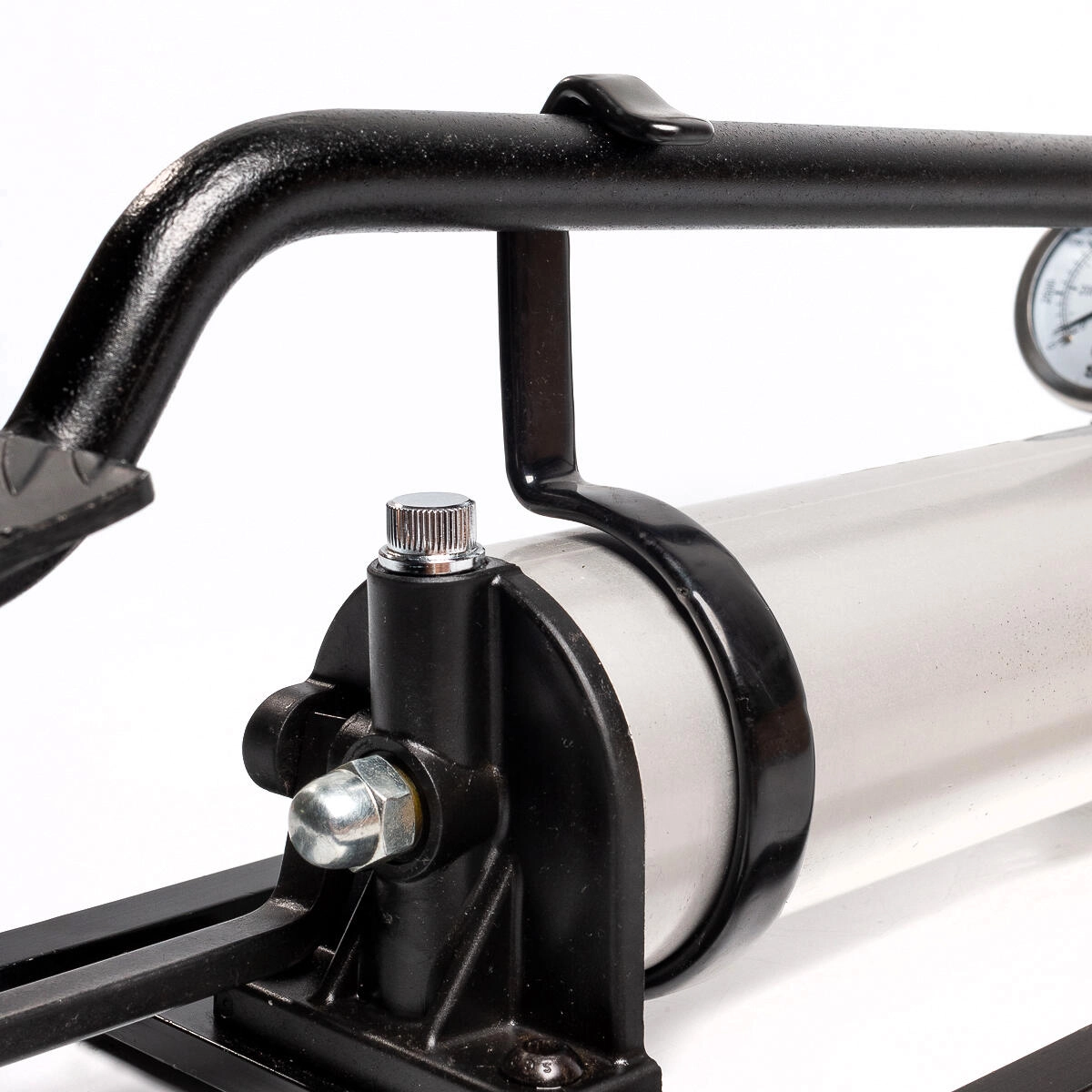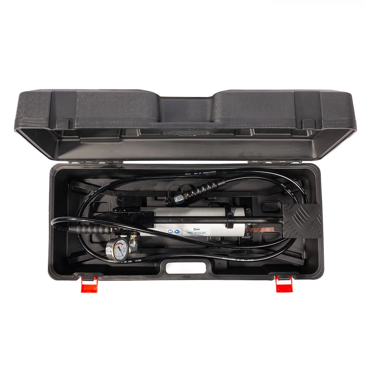 В комплекте: гидравлическая помпа ПМН-7012А встроенный виброустойчивый манометр рукав высокого давления длиной 3.00 м прочный пластиковый кейс 790х360х220 мм