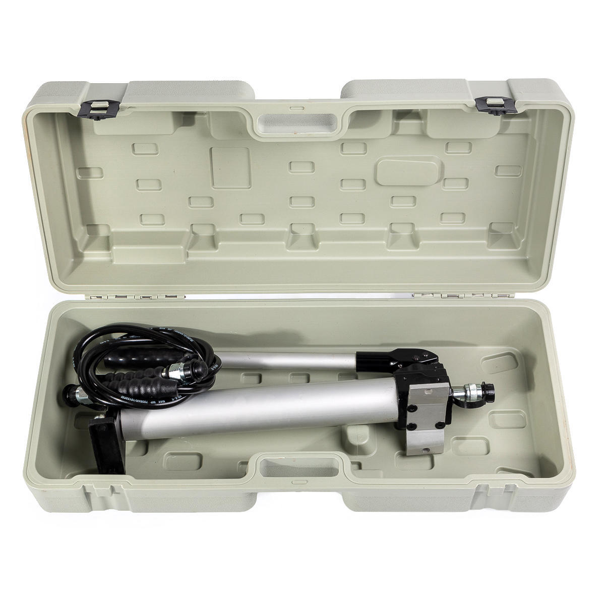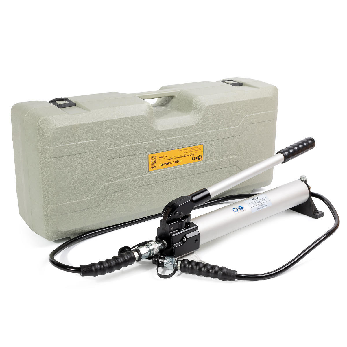 В комплекте: Гидравлическая помпа ПМР-7009А Рукав высокого давления длиной 1.8 м Прочный пластиковый кейс 760x340x200 мм