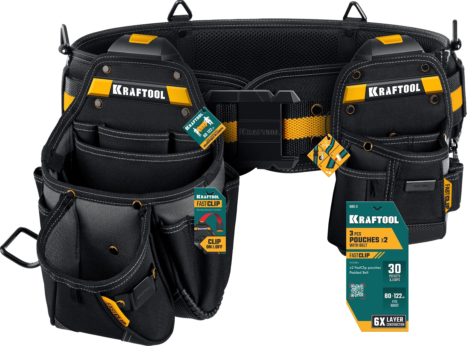 ПроизводителиПояс монтажника KBS-3, в комплекте: пояс монтажника, большая сумка, малая сумка (38762) KRAFTOOL