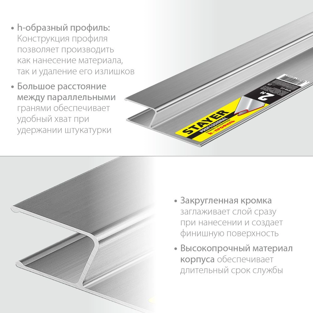 ПроизводителиПравило штукатурное, тип "h", 2.0м, "FINISH""Professional" (10745-2.0) STAYER