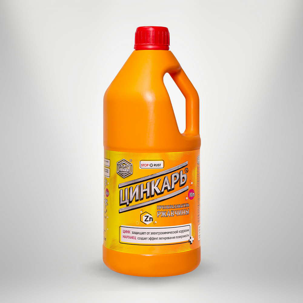 ЦИНКАРЬ — это высокоэффективное средство для борьбы с ржавчиной на металлических поверхностях. ЦИНКАРЬ предназначается для обработки металлических поверхностей с целью удаления, а правильнее сказать преобразования коррозионных поражений (ржавчины) и защиты обработанных поверхностей от последующих атмосферно-климатических воздействий. Обработка осуществляется перед покраской или нанесением других защитных покрытий. Активные компоненты – ЦИНК и МАРГАНЕЦ, фосфаты которых образуют на поверхности металла прочное защитное покрытие. ЦИНК защищает от электрохимической коррозии. МАРГАНЕЦ создает эффект легирования поверхности. Использование данного продукта требует соблюдения некоторых мер предосторожности из-за наличия в его составе ортофосфорной кислоты. Необходимо избегать попадания жидкости в глаза и на кожу. Работы лучше проводить в хорошо проветриваемом помещении или на воздухе. Желательно использовать при работе средства индивидуалПроизводитель: