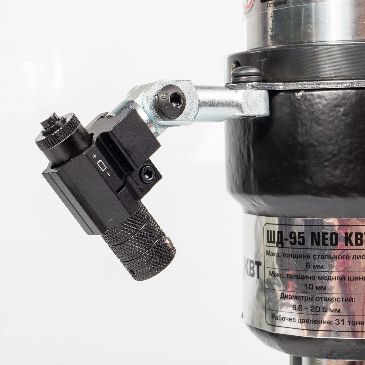 ШД-95 NEO Пресс для перфорации электротехнических шин с лазерным указателем, КВТ 76506 — профессиональный гидравлический инструмент для шинообработки. Пресс оборудован лазерным указателем для легкой и точной центровки шины при пробивке