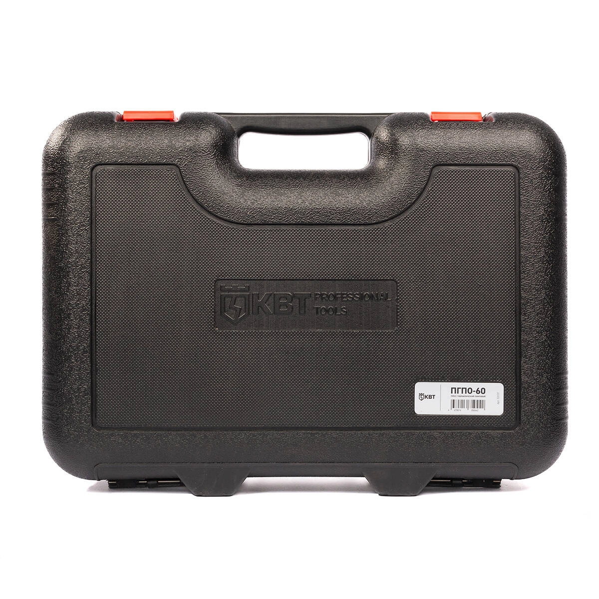 Характеристики КВТ ПГПО-60: Диаметры перфоформ в комплекте, мм: 16.2/18.6/20.5/22.5/25.4/28.3/37.0/47.0 Каждая перфоформа представлена парой «матрица - пуансон» Толщина стального листа (St 37): до 3 мм Максимальное усилие: 10 т Вес комплекта/инструмента: 8.90/5.60 кг Габариты кейса: 480х350х150 мм Совместимость с матрицами: МПО, НМПО-PG, НМПО-MG, НМПО-116 Характеристики