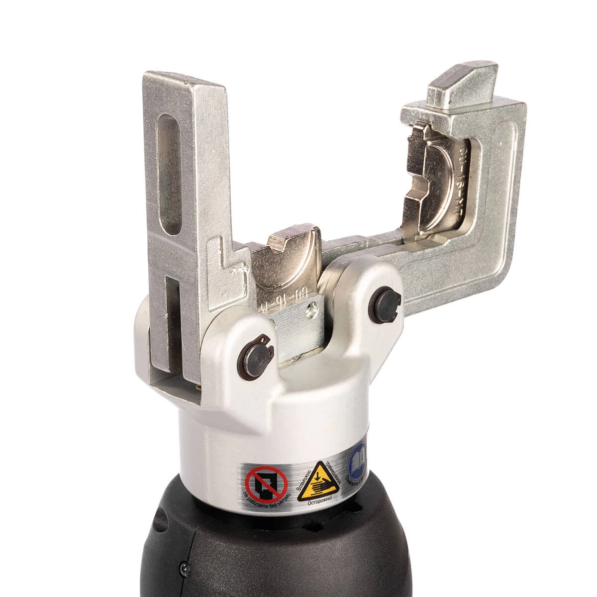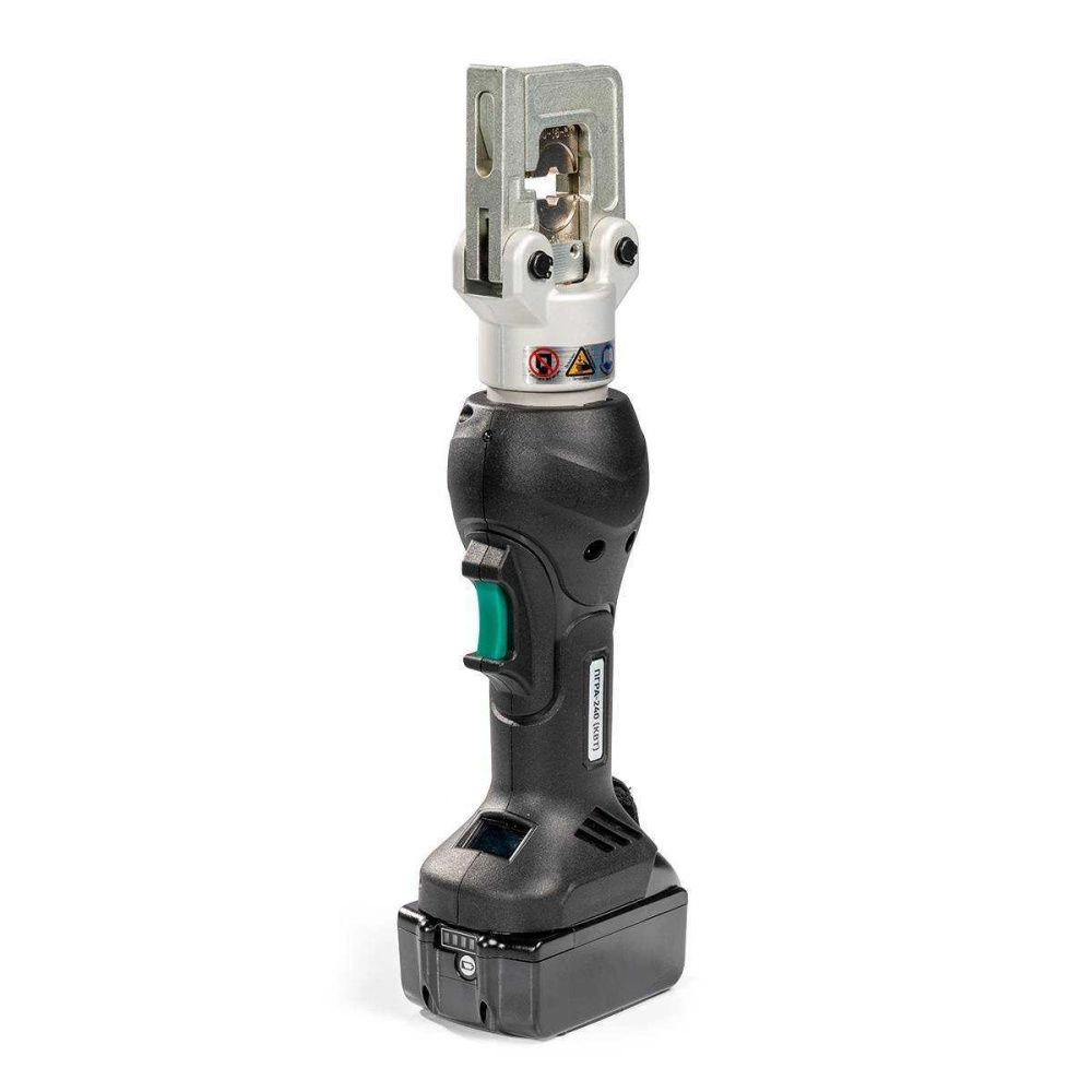 Автоматический возврат штока Механизм автоматического сброса давления (АСД) Кнопка ручного сброса давления Вращающаяся П-образная голова Гексагональная опрессовка Светодиод для подстветки рабочей зоны Светодиод-индикатор заряда батареи Возможность работы одной рукой Максимальное усилие: 5 т Время опрессовки: 3–6 сек. Время зарядки аккумулятора: 120 мин. Вес аккумулятора: 0.58 кг Вес комплекта/инструмента: 7.20/2.60 кг Длина: 375 мм Габариты кейса: 490х400х130 мм Характеристики