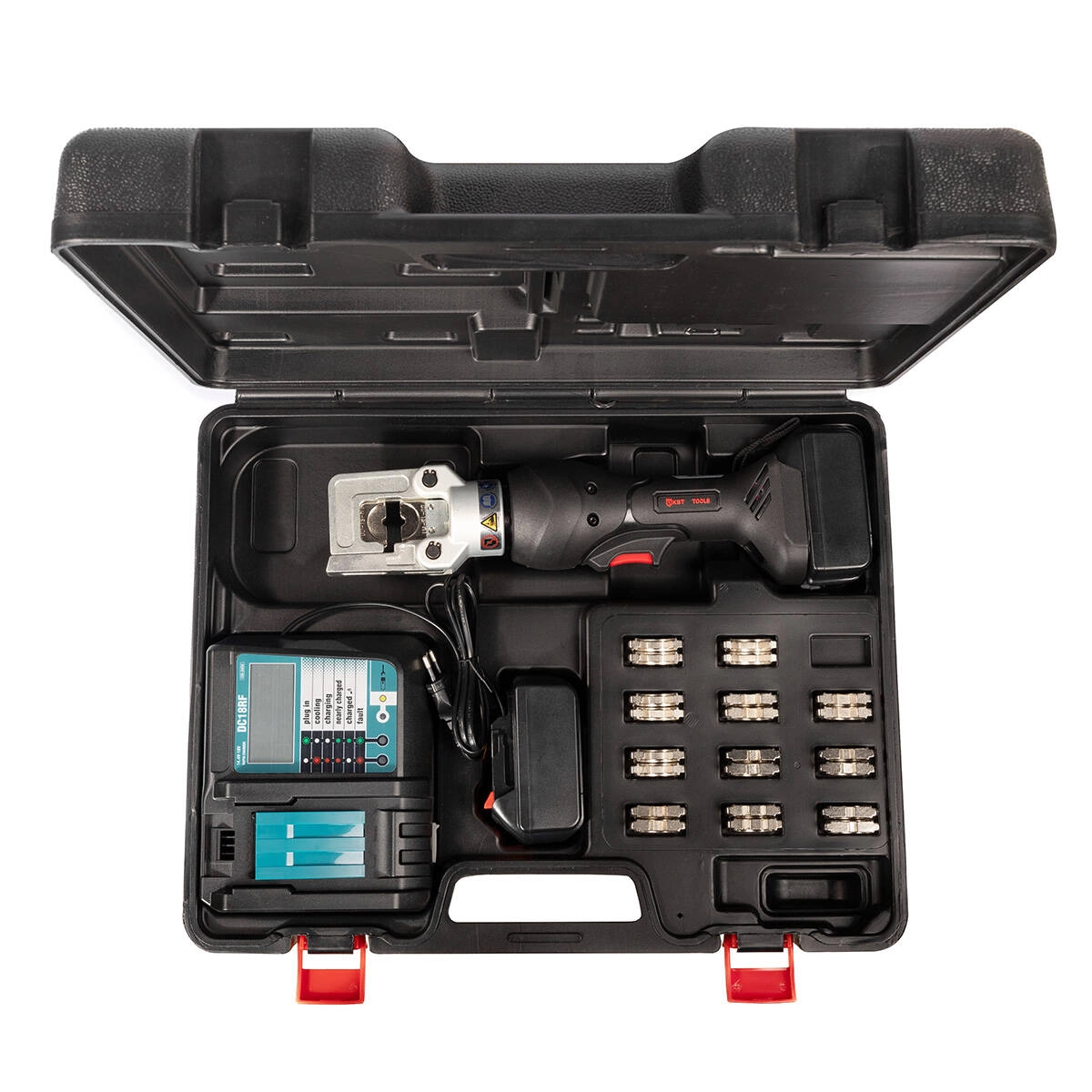 В комплекте: аккумуляторный пресс ПГРА-240 набор из 13 сменных шестигранных матриц, перекрывающих диапазон из 13 размеров кабеля 2 аккумуляторные батареи Li-Ion, 18 В/5А ч зарядное устройство от сети 230 В прочный пластиковый кейс