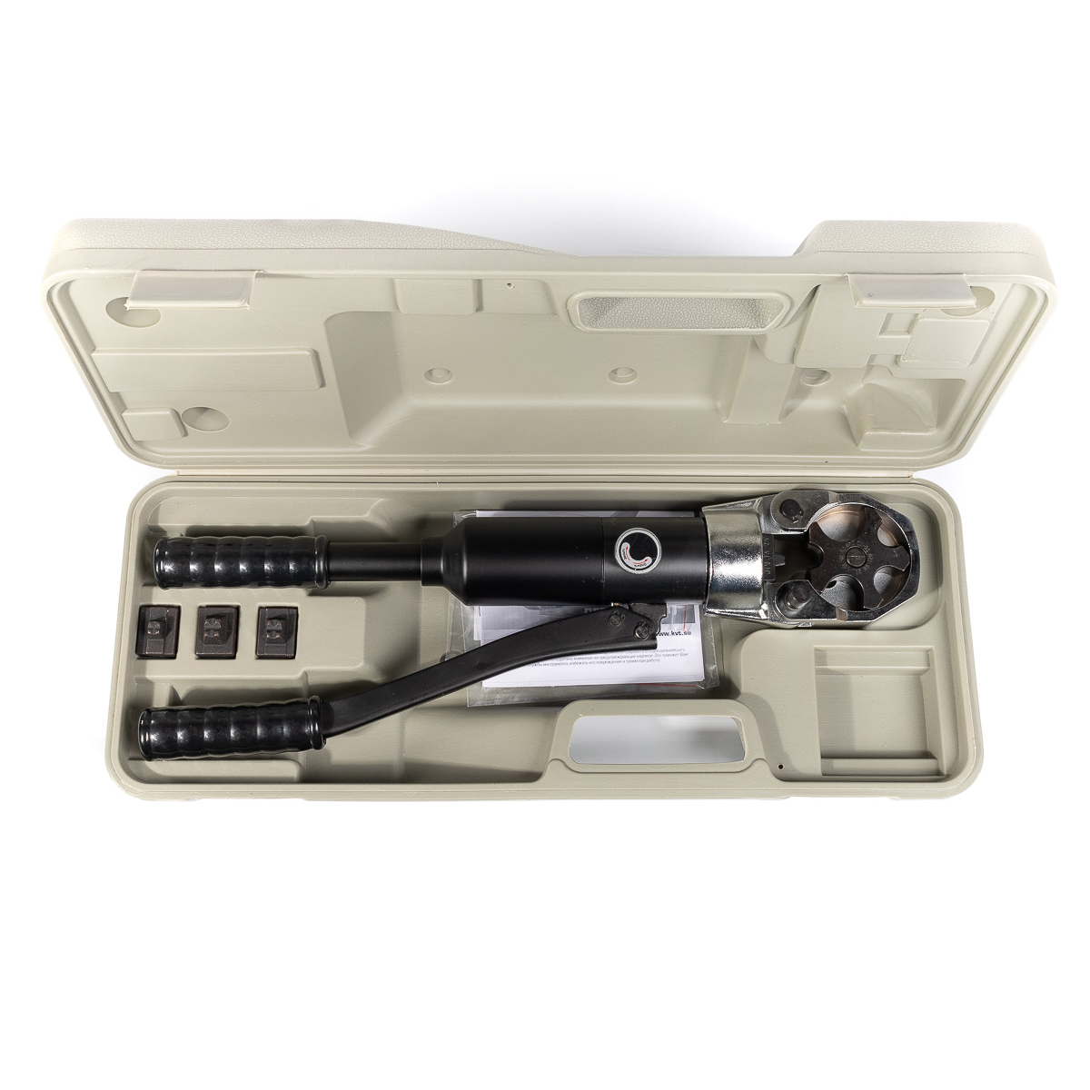 В комплекте: ручной гидравлический пресс ПГРс-240 набор из 4 сменных шестигранных матриц ремкомплект (уплотнительные кольца) прочный пластиковый кейс