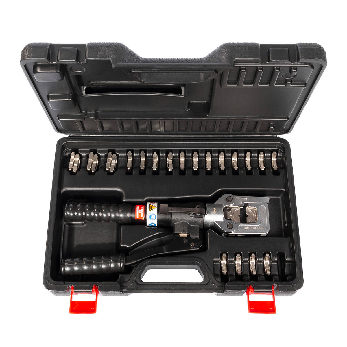 В комплекте: ручной гидравлический пресс ПГРс-240у набор из 12 сменных шестигранных матриц прочный пластиковый кейс