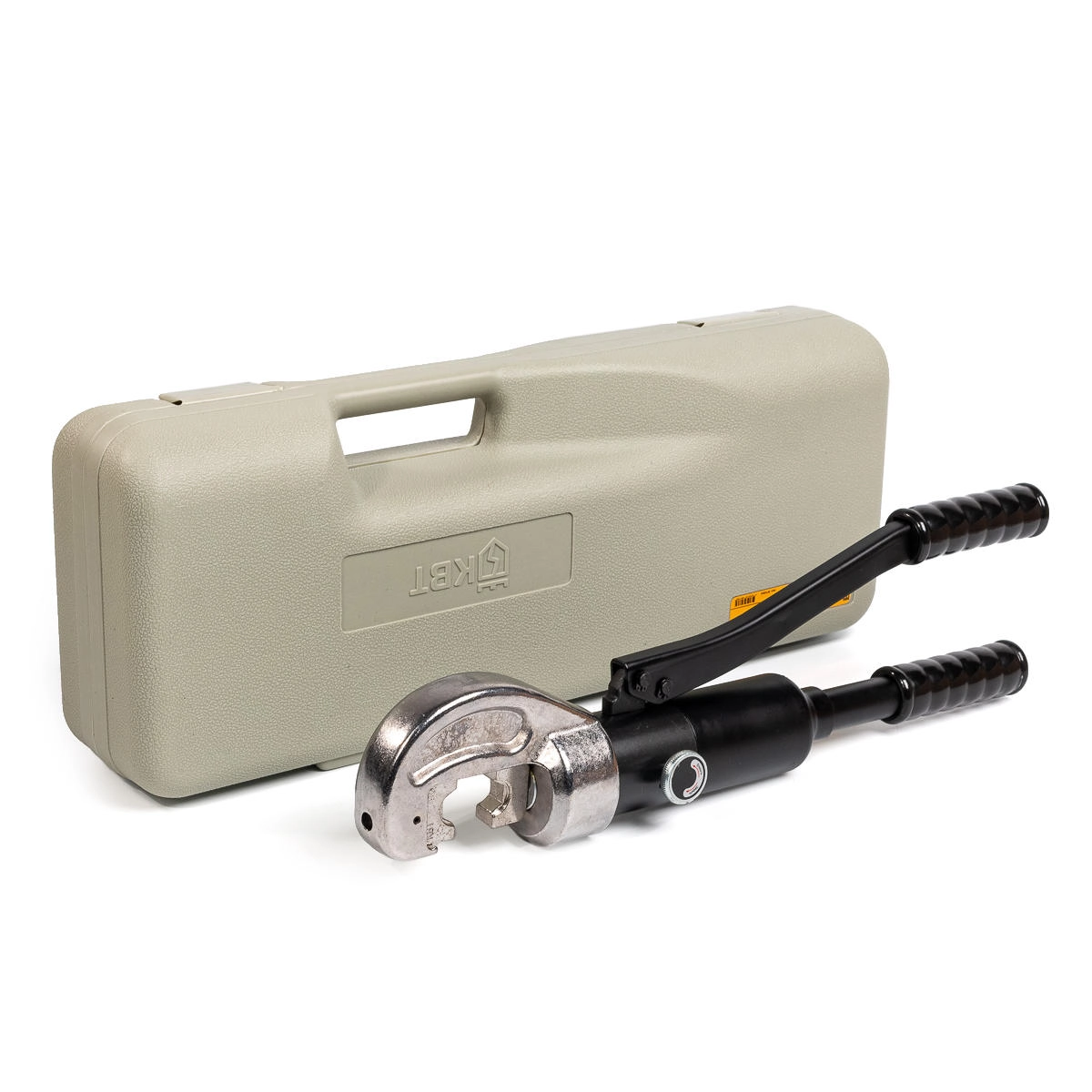 Механизм автоматического сброса давления (АСД) Клапан ручного сброса давления С-образная кованая голова придает обеспечивает надежность и особую прочность инструмента Точно подогнанные безлюфтовые матрицы Двухскоростная помпа с механизмом быстрого хода поршня Максимальное усилие: 12 т Всесезонное гидравлическое масло «КВТ» гарантирует работу инструмента при температуре не ниже -15 °С Вес комплекта/инструмента: 7.95/4.80 кг Длина: 490 мм Габариты кейса: 545х220х115 мм Характеристики