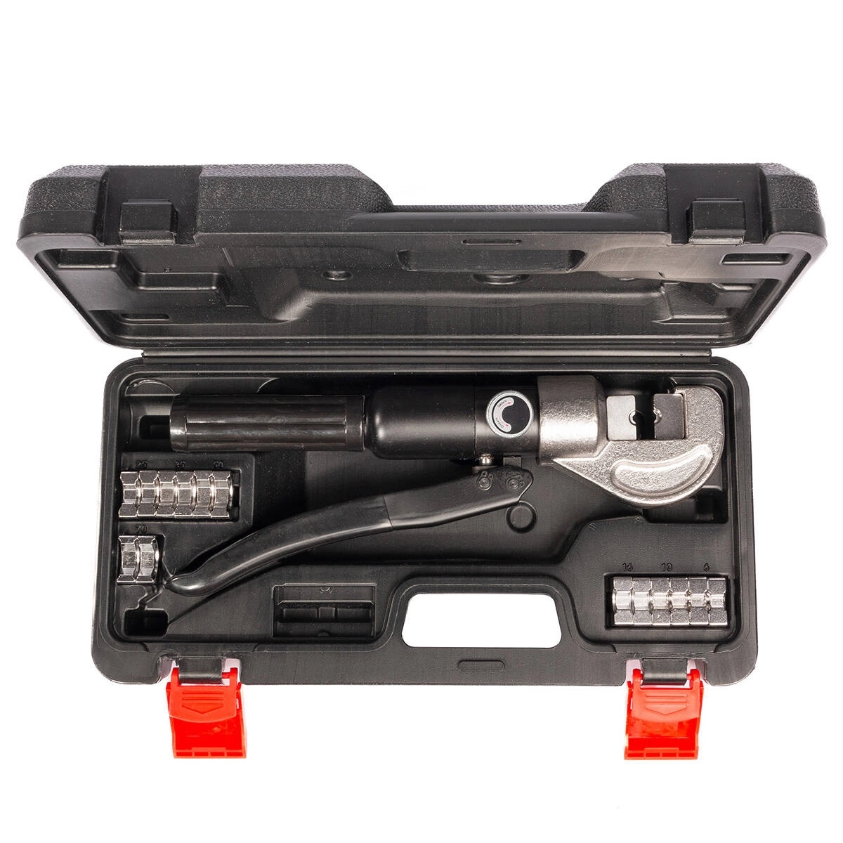 В комплекте: ручной гидравлический пресс ПГРс-70 набор из 8 сменных шестигранных матриц ремкомплект (уплотнительные кольца) прочный пластиковый кейс